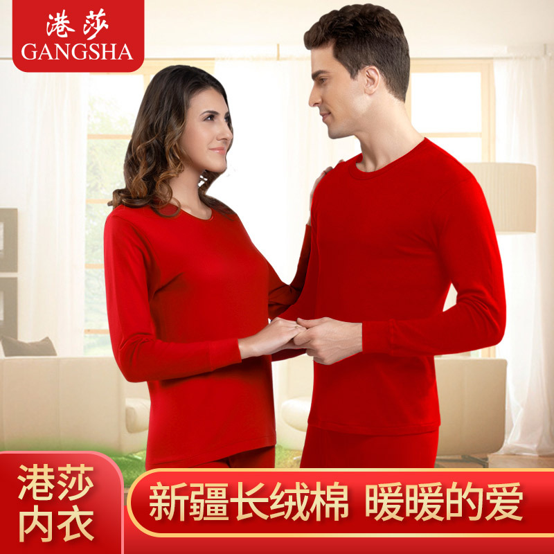 | nameOriginal | Hong Kong Sha men's thermal underwear suit women's cotton round neck bottoming underwear birth year Big Red autumn clothes long pants |