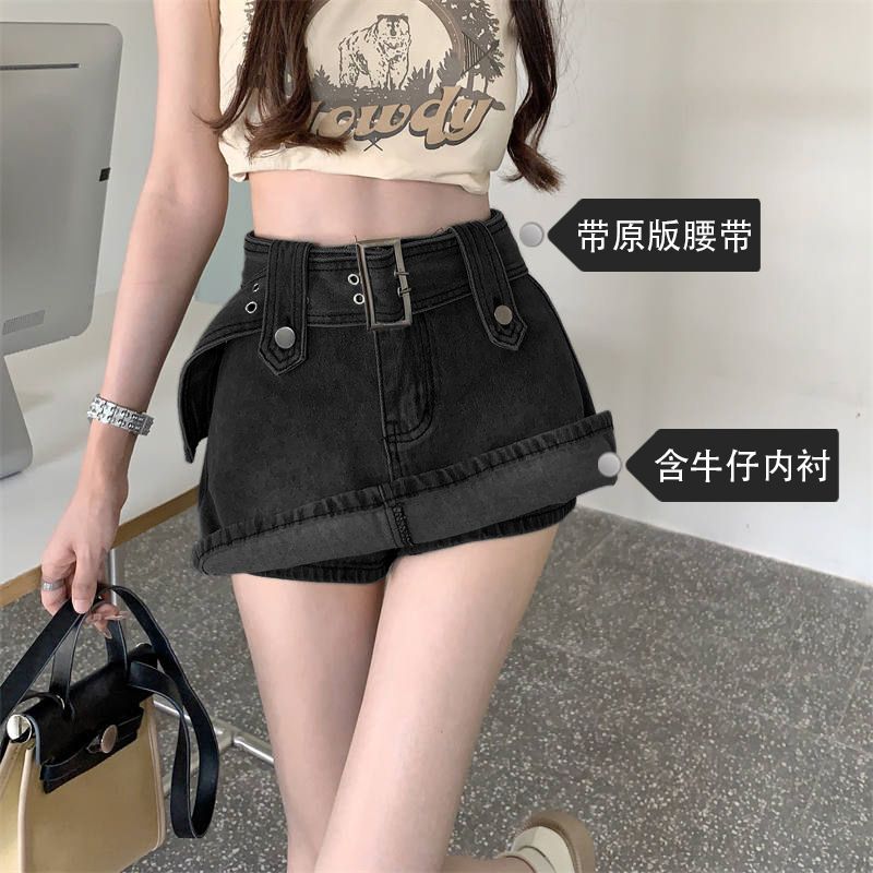 Hong Kong Style Black Grey High Waist Denim Skirt Women’s Summer New Spice Girl Culottes plus size Slimming Hip Short Skirt