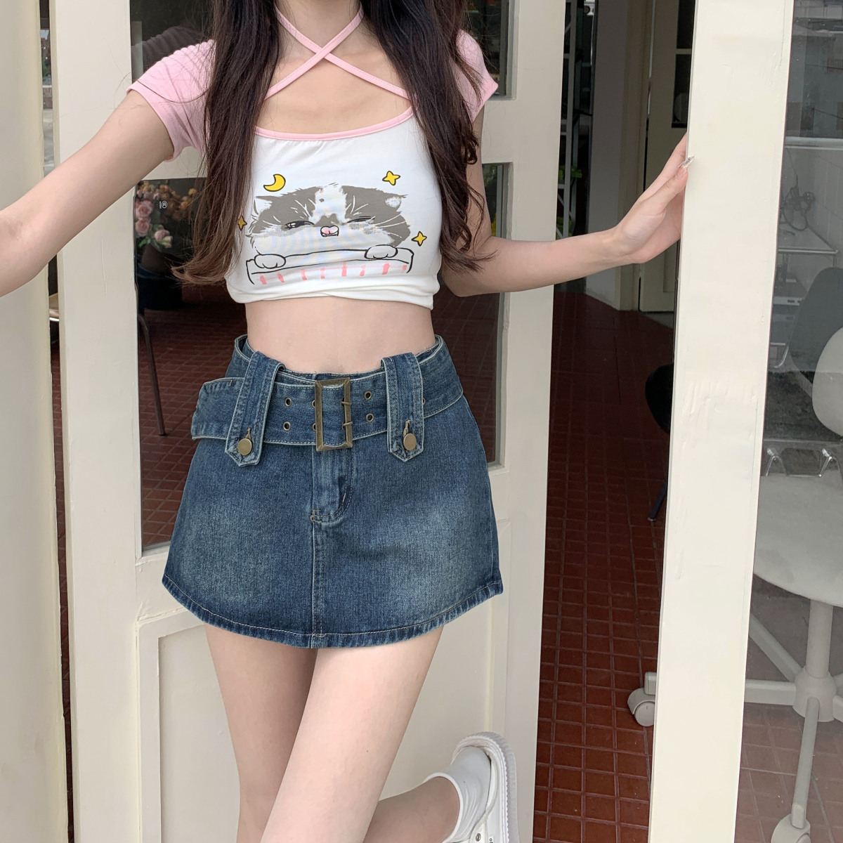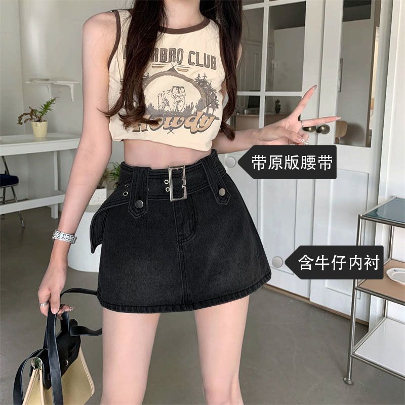 Hong Kong Style Black Grey High Waist Denim Skirt Women's Summer New Spice Girl Culottes plus size Slimming Hip Short Skirt