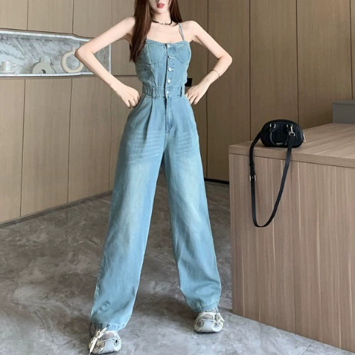 | nameOriginal | Hong Kong style buttoned spring and summer high waist floor-length trousers with suspenders |