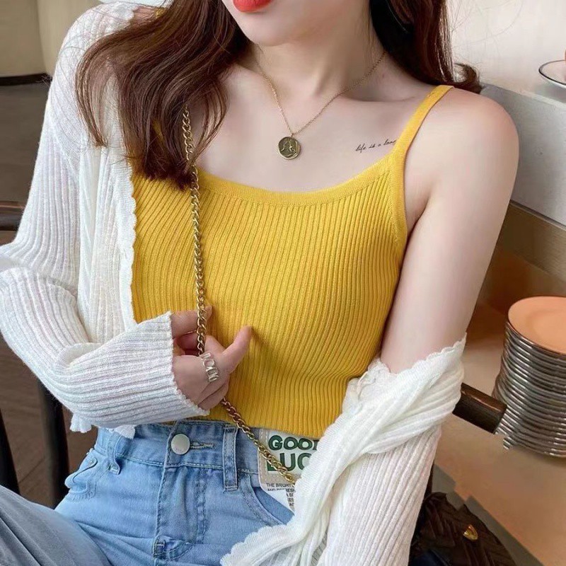 | nameOriginal | Hong Kong Style Chic Vintage Ice Silk Knitted Small Camisole Women's Outer Wear Small Fresh Sleeveless T-Shirt Top |