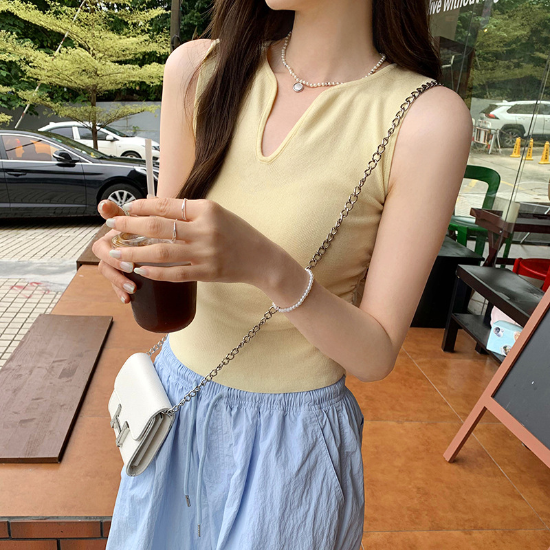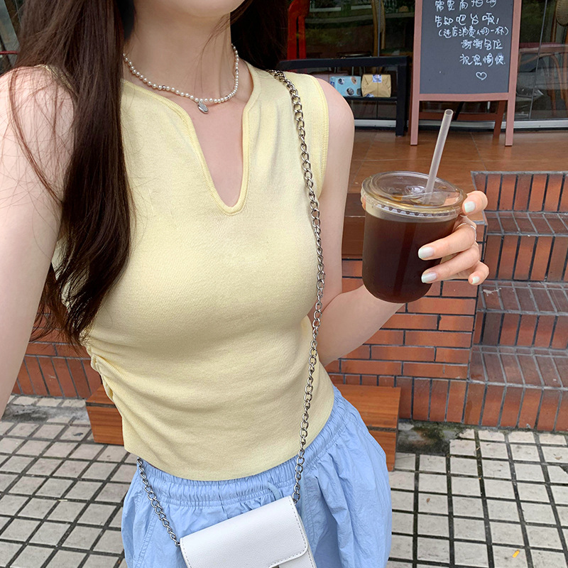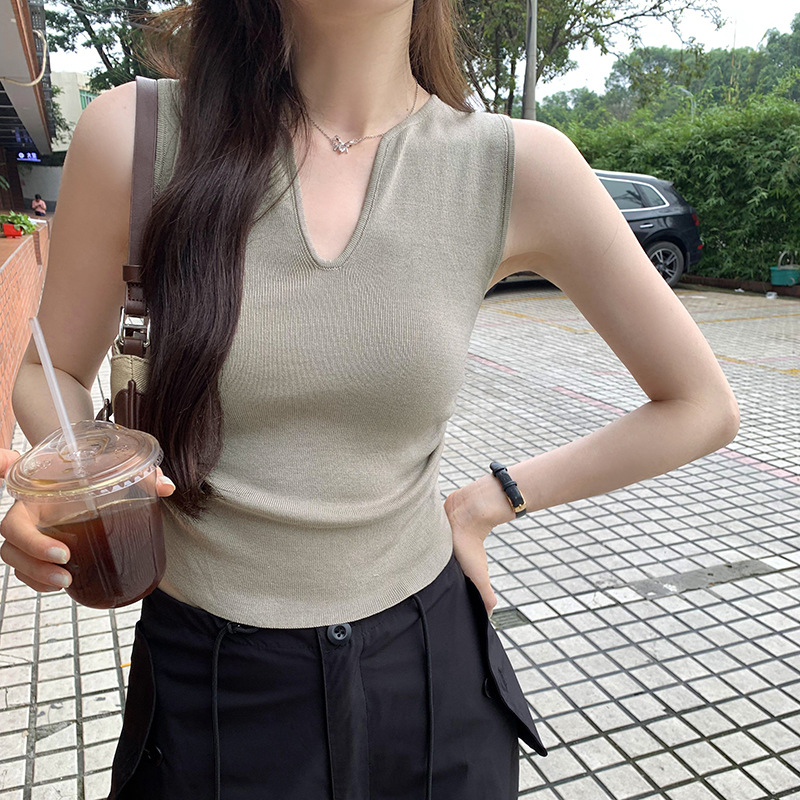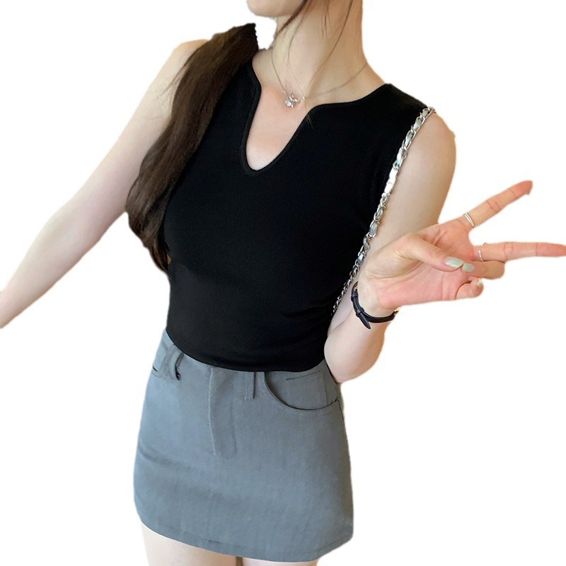 | nameOriginal | Hong Kong-style Design Waisted Pleated V-neck Vest Women's 2024 Summer New Style Outer Wear Elegant Sleeveless Slim-fit Top |