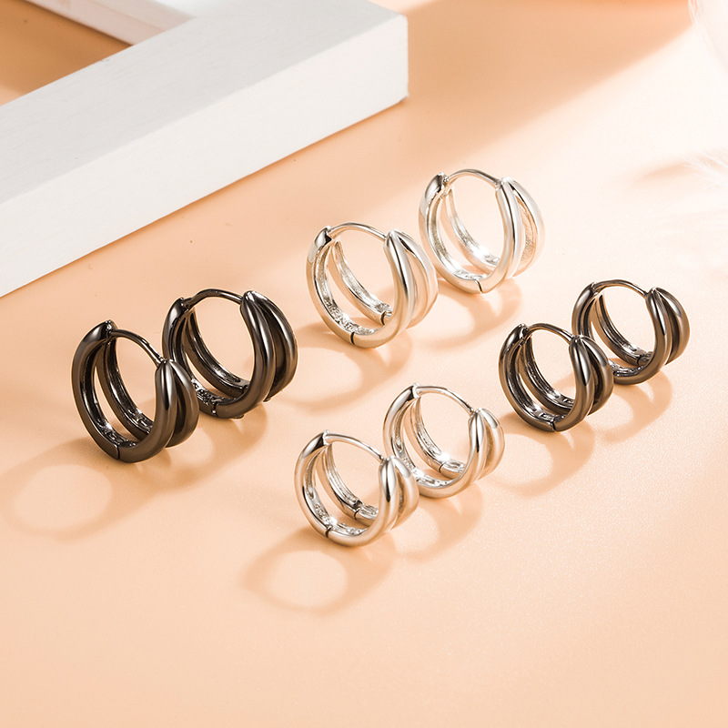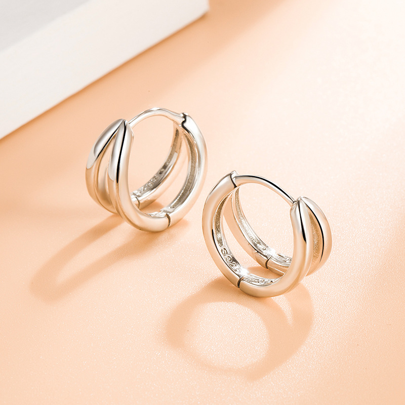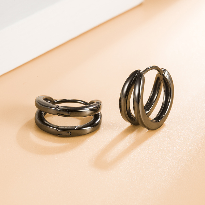 Hong Kong Style Double Arc Ring Earrings Cold Style Female Circle Ear Ring Niche Design Round Earrings Couple Ear Trendy