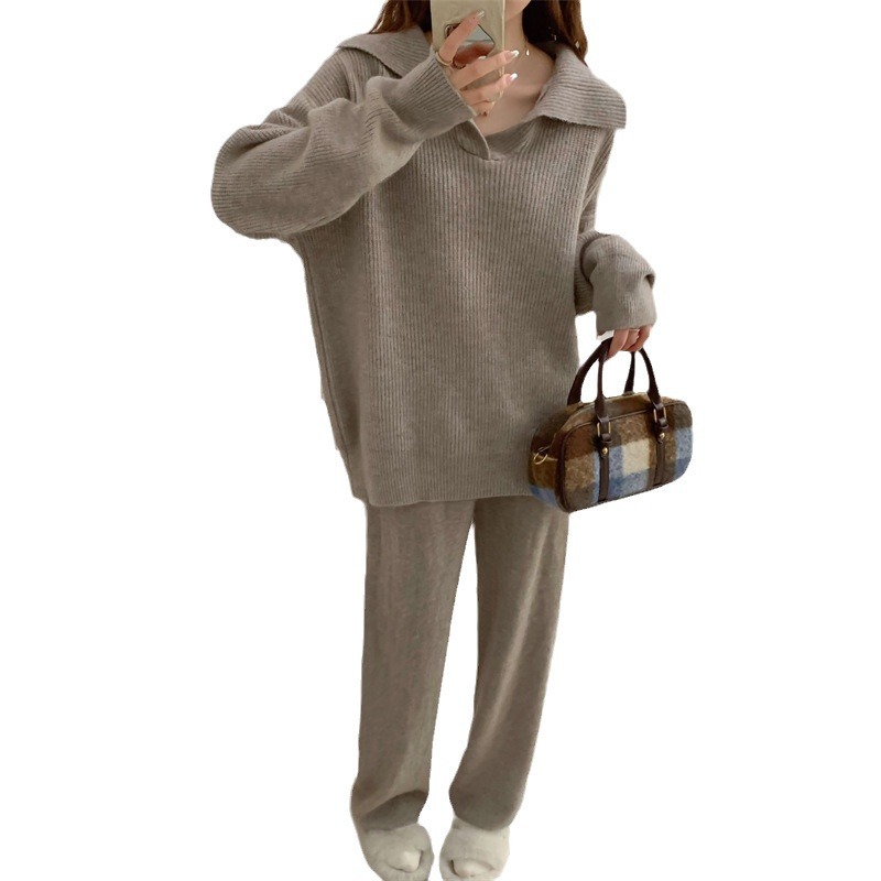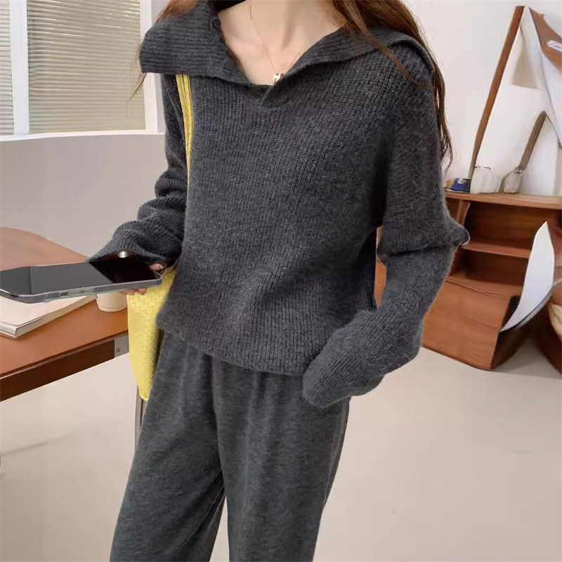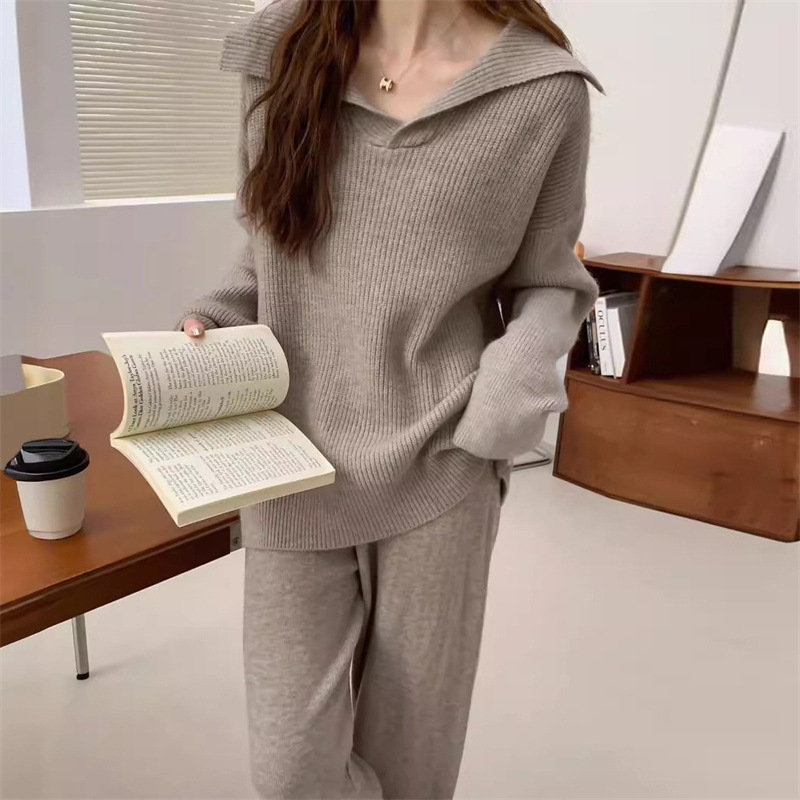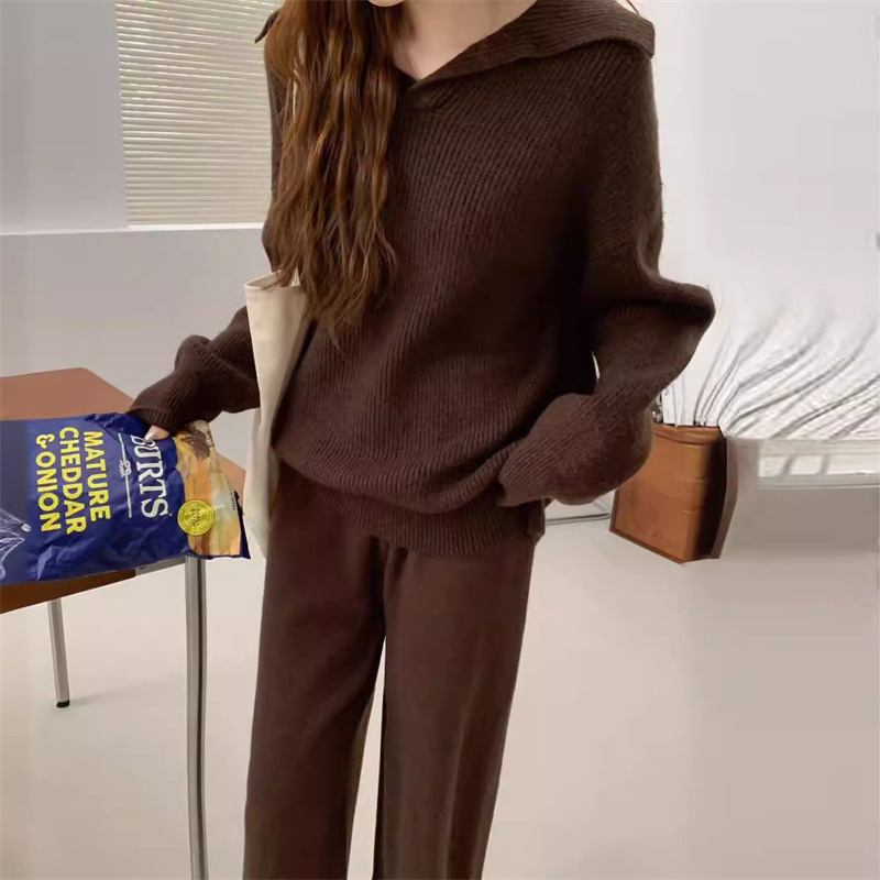 | nameOriginal | Hong Kong Style Elegant Lapel Knitwear Pullover Sweater Women's Loose Two-piece Autumn and Winter New Wide Leg Pants suit Women's Clothing |
