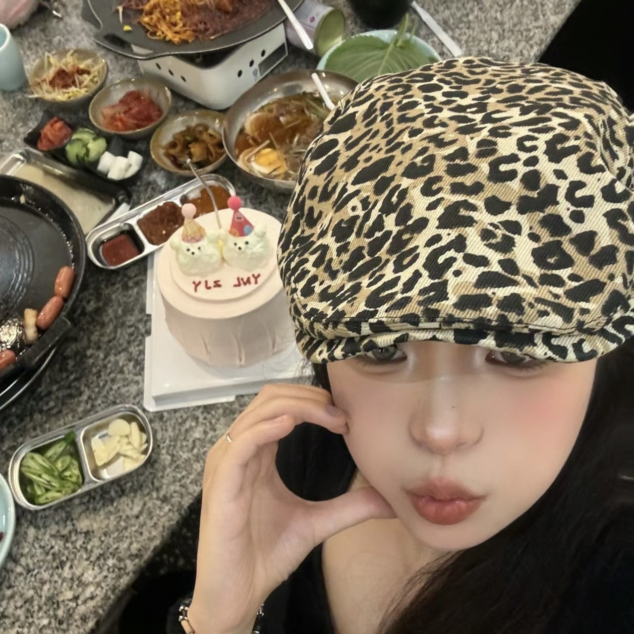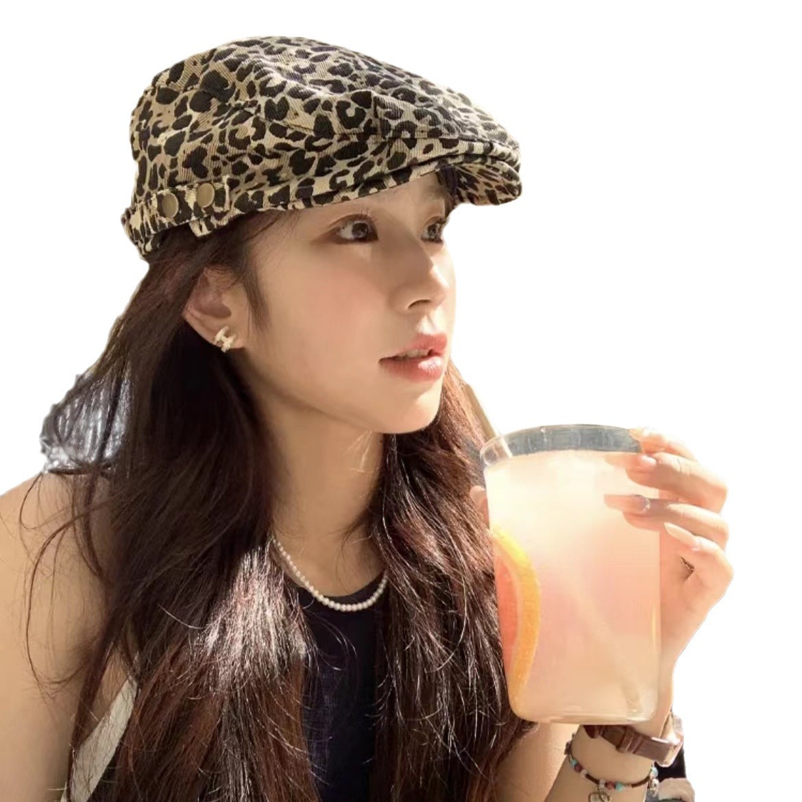 Hong Kong Style Ins Niche Design Leopard Print Advanced Cap Women’s Y2K Street Spice Cap Vintage All-match Bailey Hat