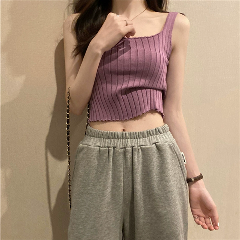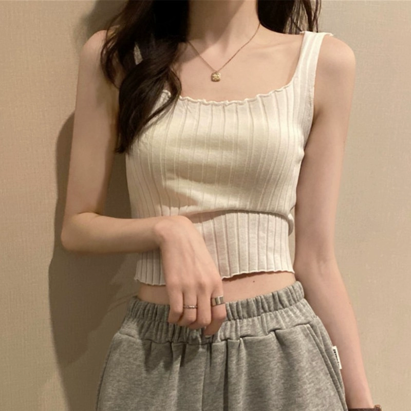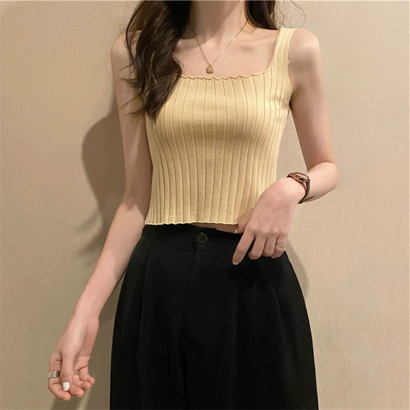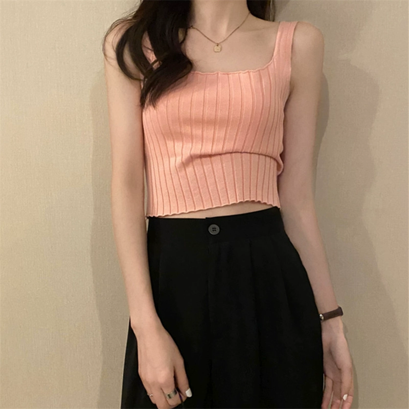 Hong Kong style Japanese style small camisole for women summer outer wear ins with tube top inside slimming slim short bottoming shirt top