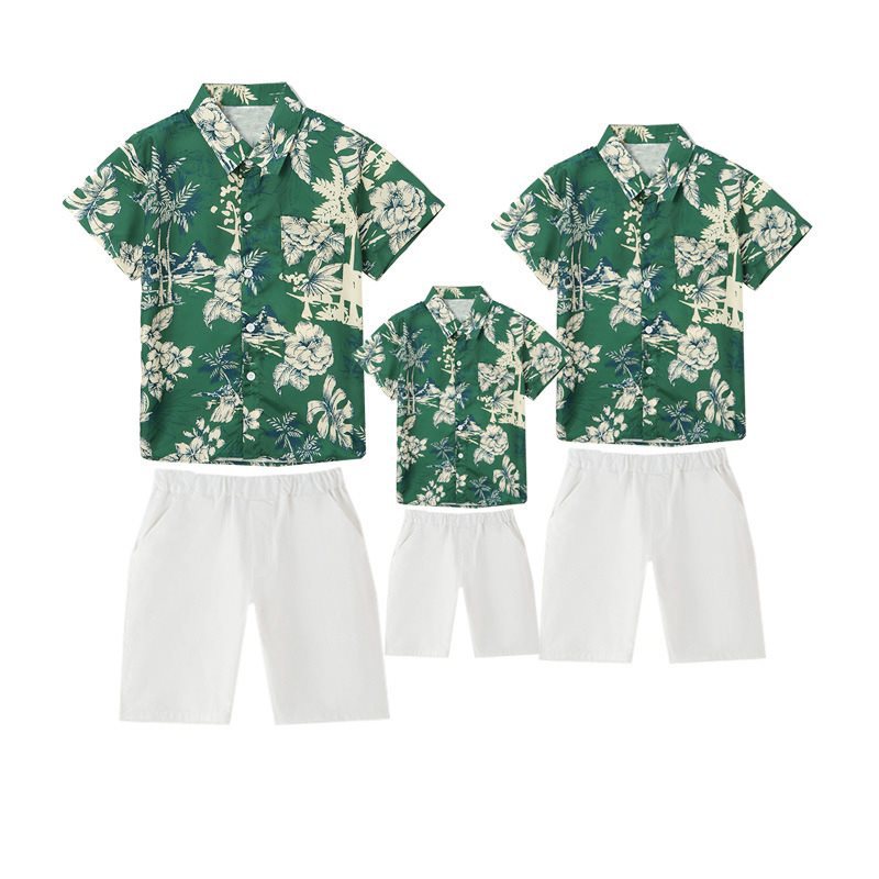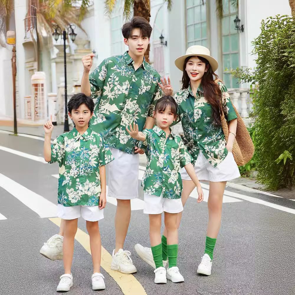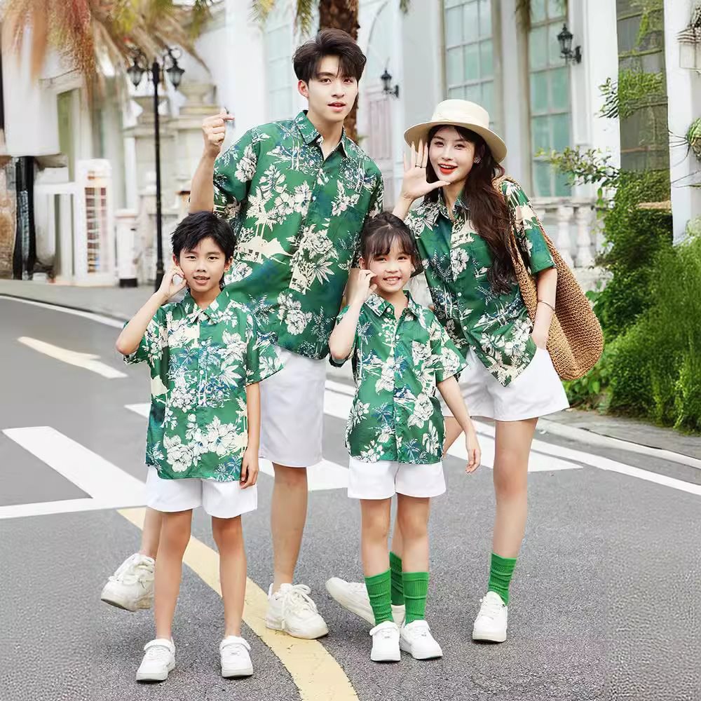 | nameOriginal | Hong Kong-style parent-child outfit summer 2024 new fashion family of four retro style short sleeve color shirt home decoration suit |