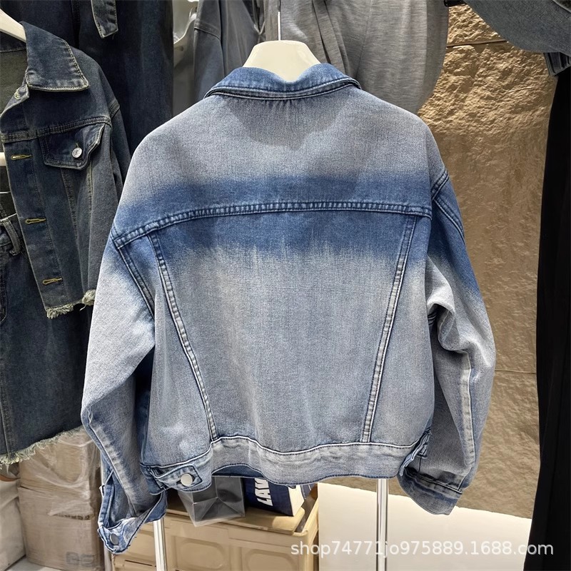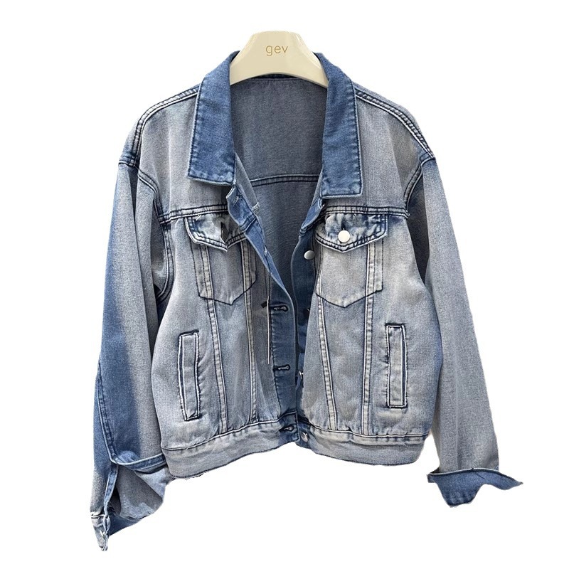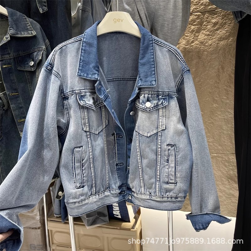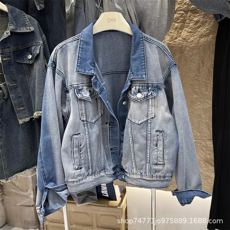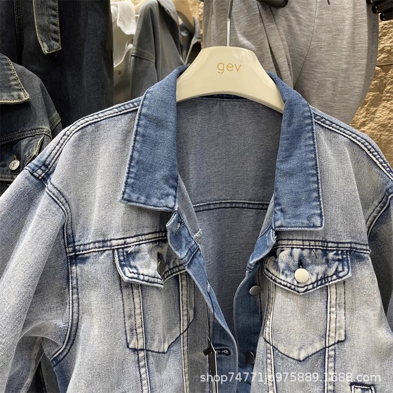 | nameOriginal | Hong Kong style personalized contrast color washed Denim coat for women Spring and Autumn new design sense niche lapel casual workwear jacket |