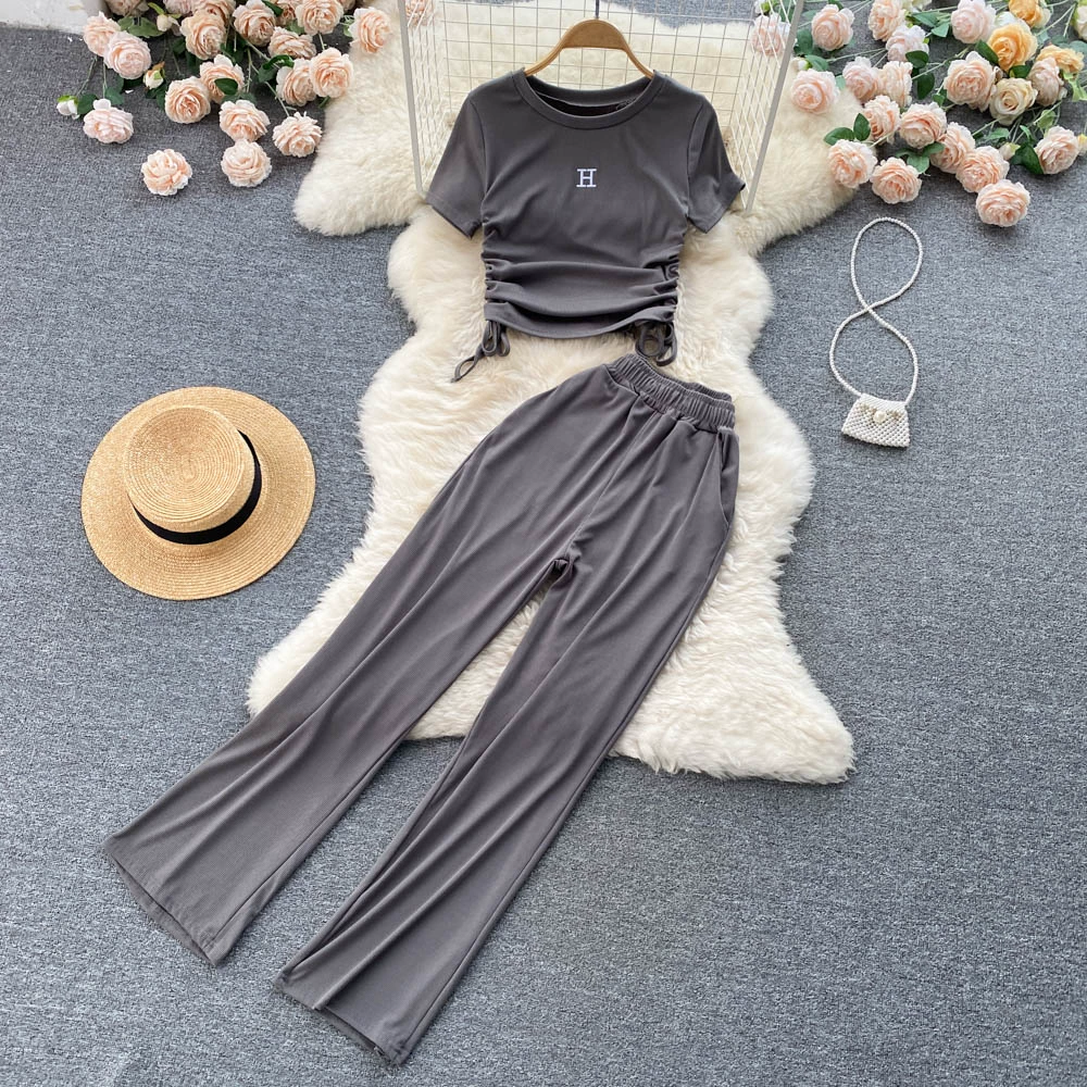 | nameOriginal | Hong Kong style pleated lace-up short-sleeved top with draped drawstrings |