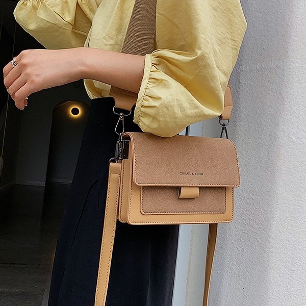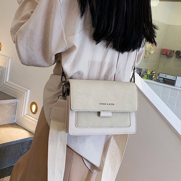 Hong Kong Style Retro Frosted Contrast Color Small Square Bag 2024 New Korean Style Fashion Texturized Trendy Shoulder Crossbody Women's Bag