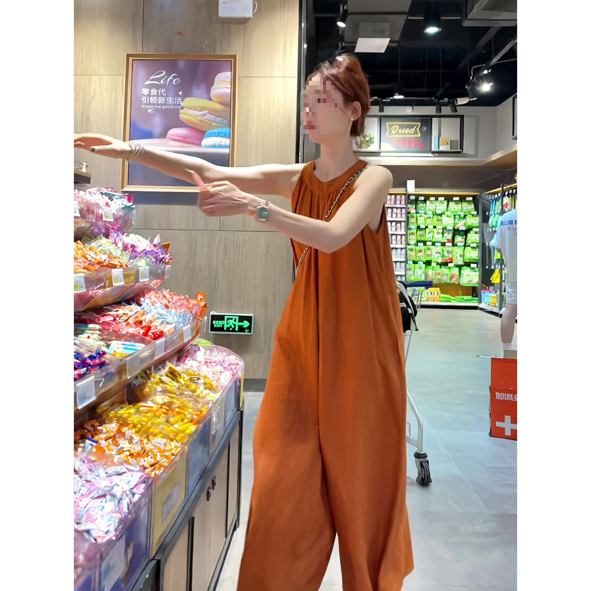 | nameOriginal | Hong Kong Style Retro Jumpsuit Women's 2024 Summer New Design Sense Hanging Neck Loose Slimming Mid-length Wide-leg Pants |