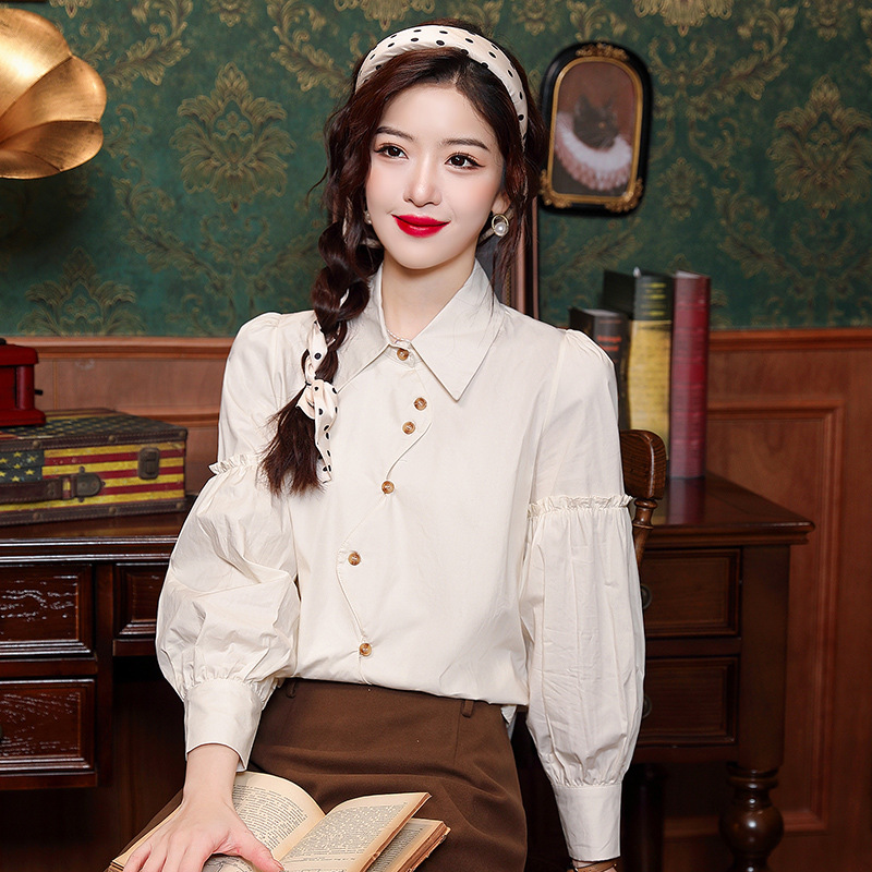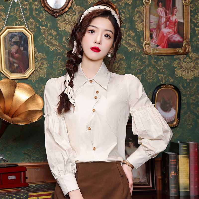 Hong Kong-style Retro Long-sleeved Shirt Women's Spring 2024 New Lady's Small Shirt Elegant All-match Western-style Top
