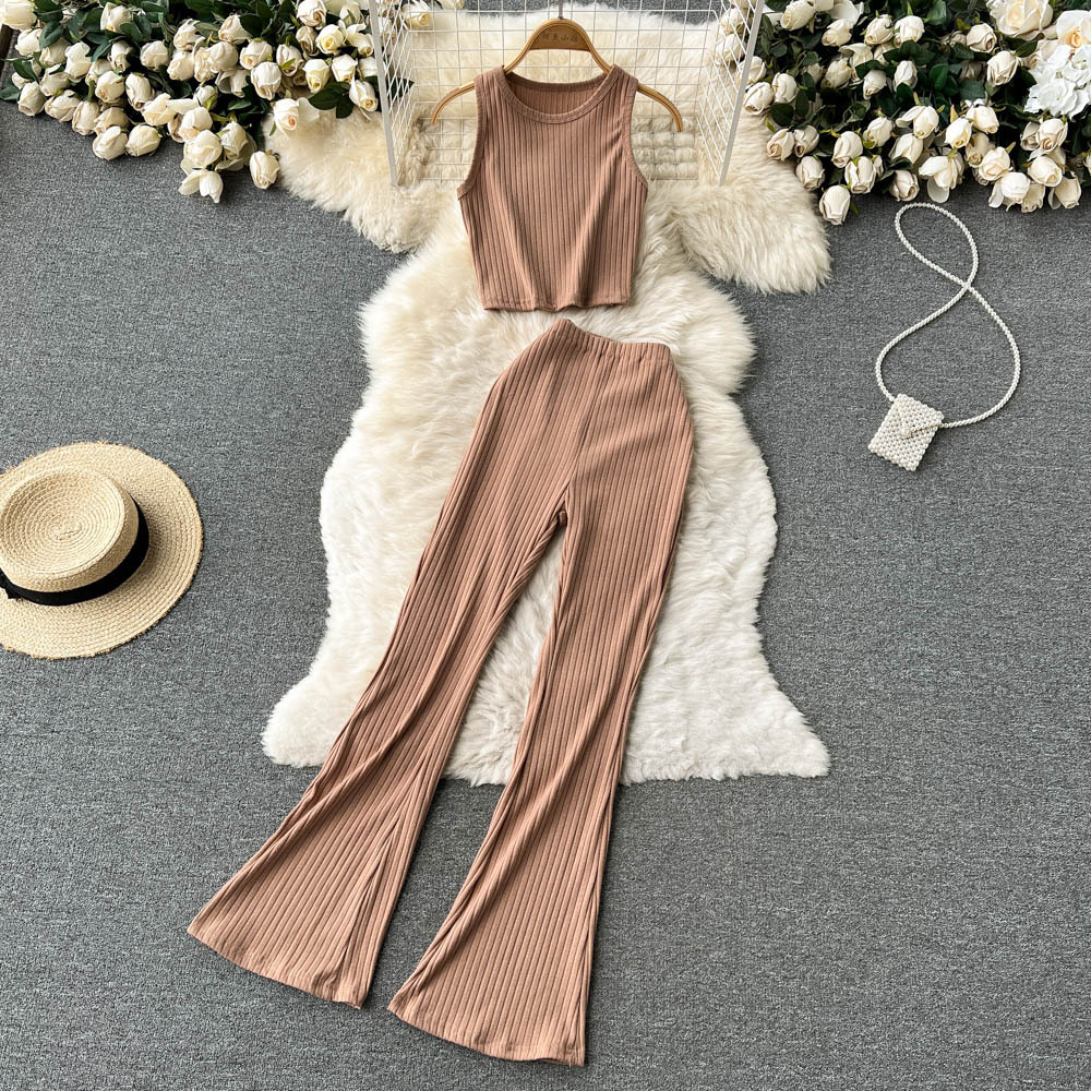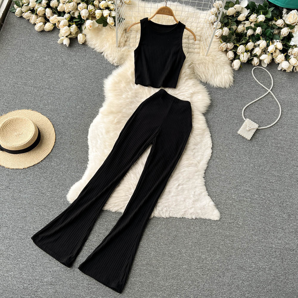 | nameOriginal | Hong Kong Style Retro New Style Knitted suit Short Sleeveless Top Women's High Waist Slimming Trousers Two-Piece Trendy Trousers |