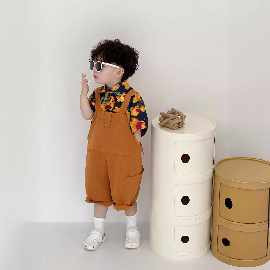 | nameOriginal | Hong Kong style retro short-sleeved shirt parent-child wear summer flower print loose design sense niche medium and large children's clothing top |