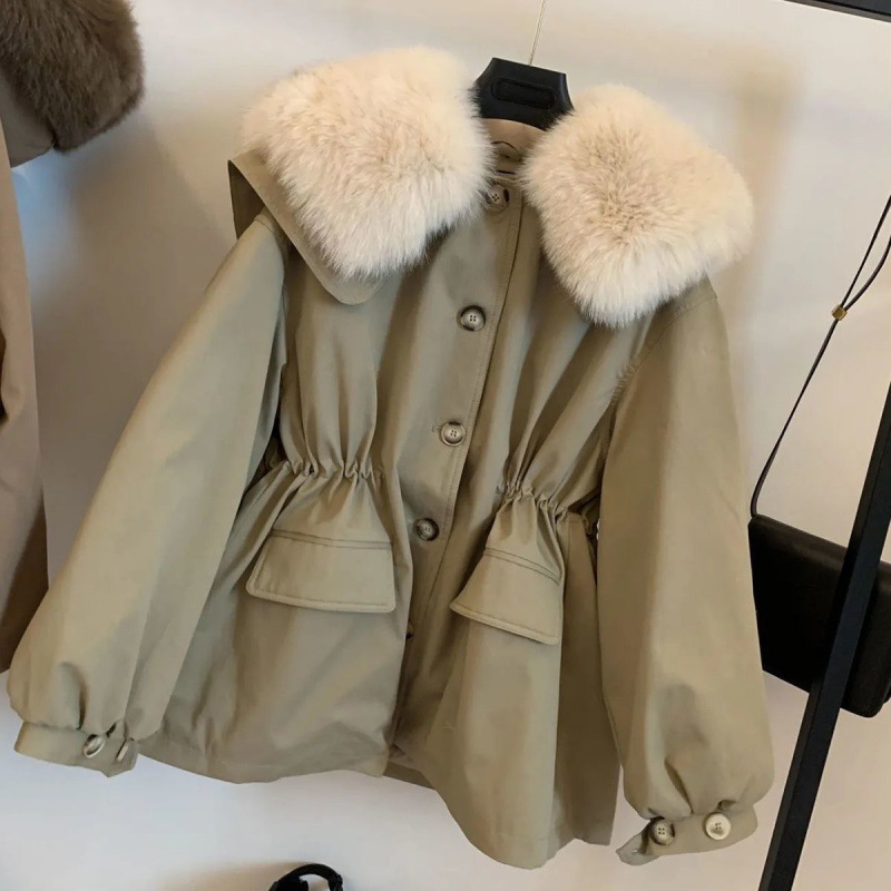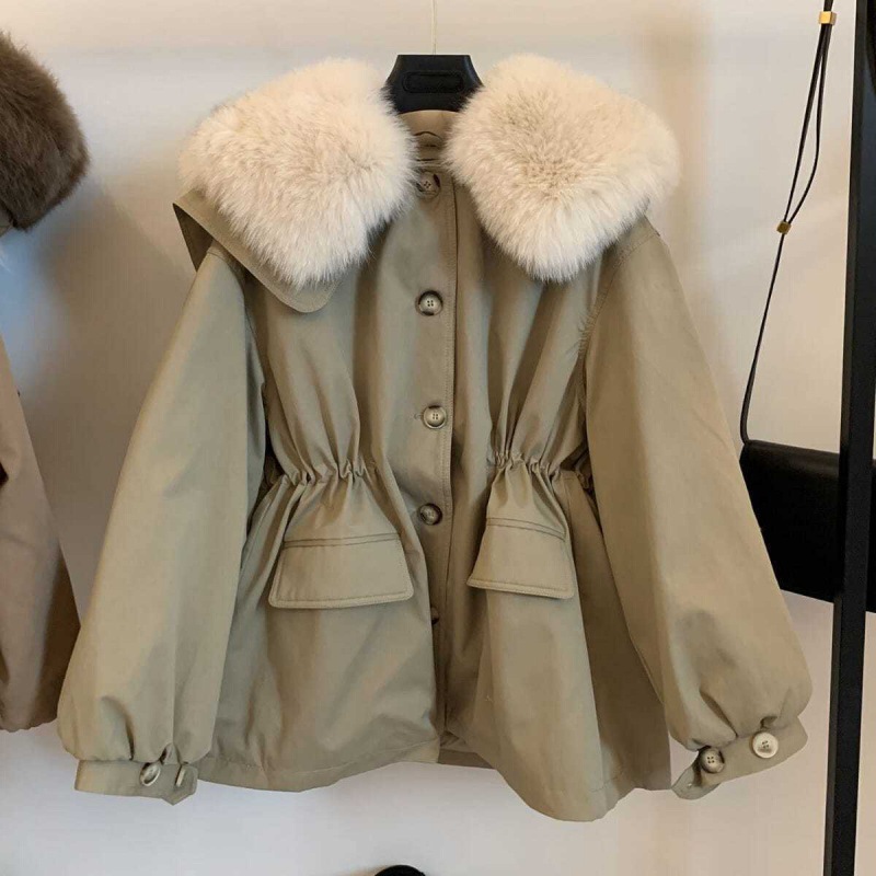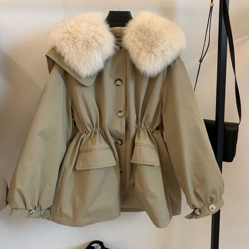 | nameOriginal | Hong Kong style retro thickened fur collar cotton-padded coat for women 2023 Winter new Korean style drawstring waist slimming large fur collar cotton-padded coat |