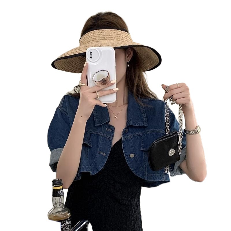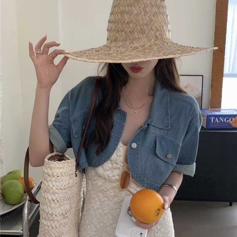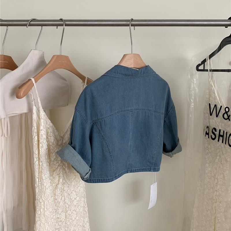 | nameOriginal | Hong Kong style retro thin short sleeve Denim shirt for women 2023 Summer matching skirt top outer vest short coat |