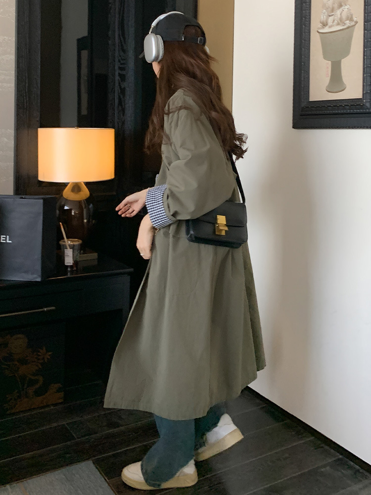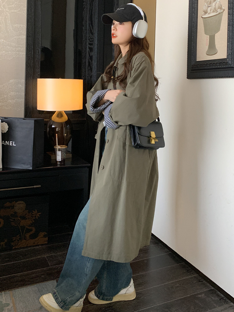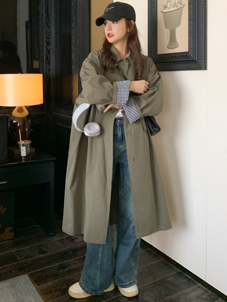 | nameOriginal | Hong Kong style retro workwear trench coat for women Spring and Autumn Japanese style small design loose mid-length over-the-knee overcoat |