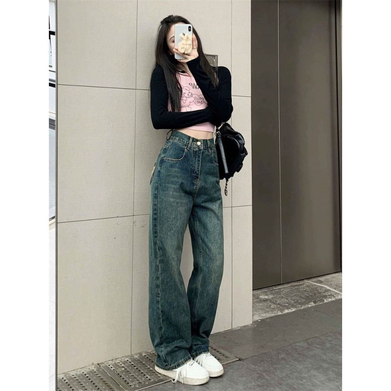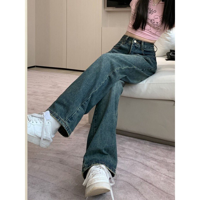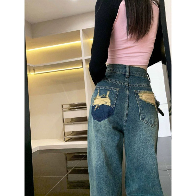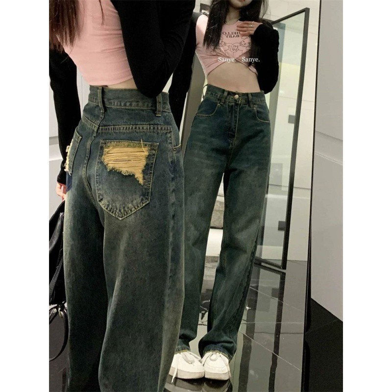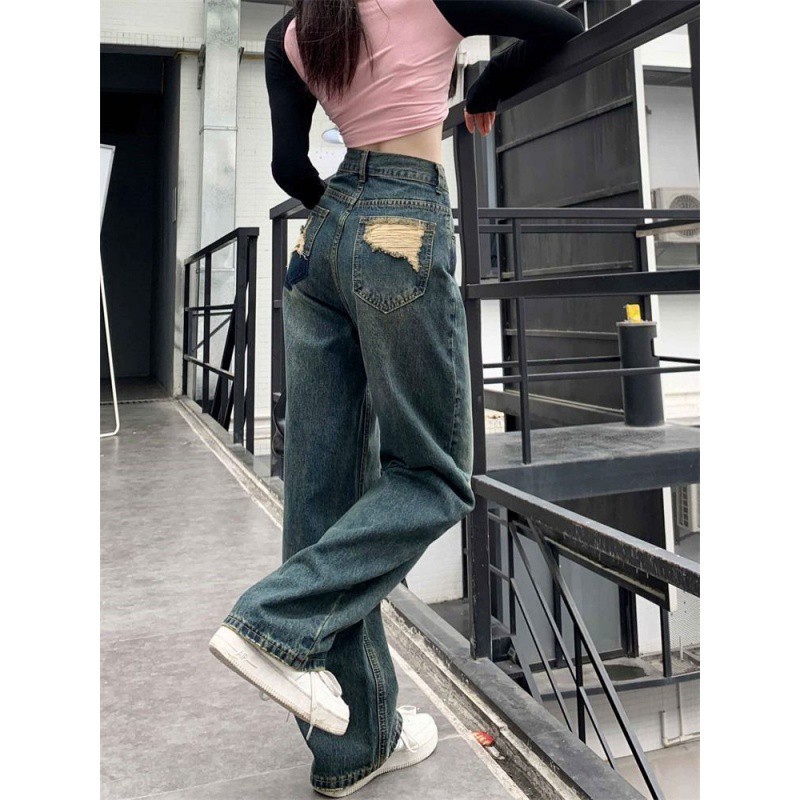 | nameOriginal | Hong Kong Style Ripped Retro Jeans Women's Summer Design Sense Niche Loose High Waist Wide Leg Pants for Small People |