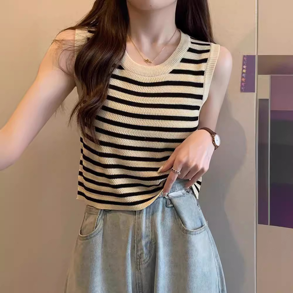 | nameOriginal | Hong Kong-style Slim-fit Striped Camisole Women's Summer Slim-fit Outer Wearing Inner Sleeveless Knitted Casual Top |