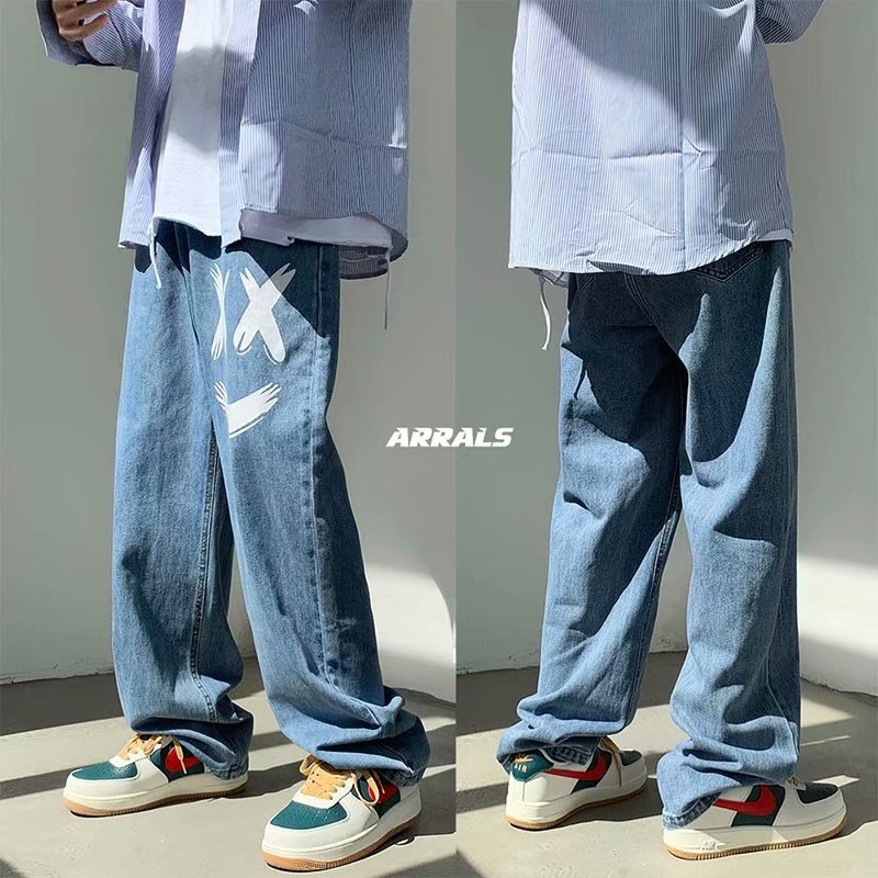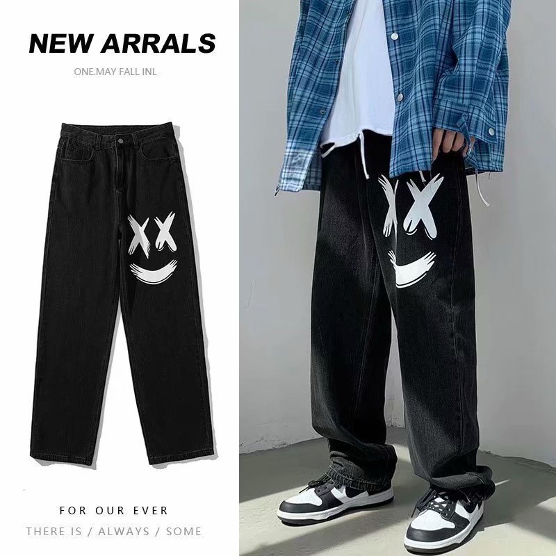 | nameOriginal | Hong Kong style smiley face print American street fashion all-matching Denim pants summer men's straight loose casual mopping pants |