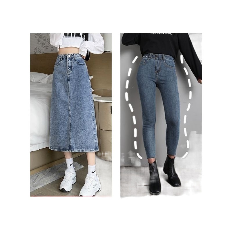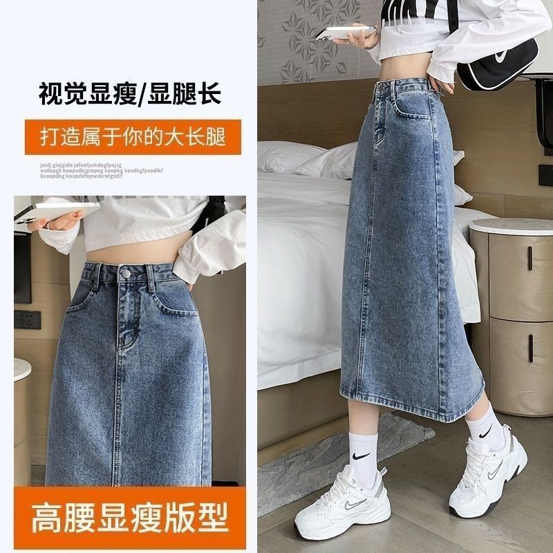 Hong Kong-style Split Denim Skirt Women's High Waist Slimming Summer 2024 New Loose A- word Mid-length Skirt