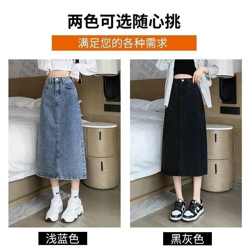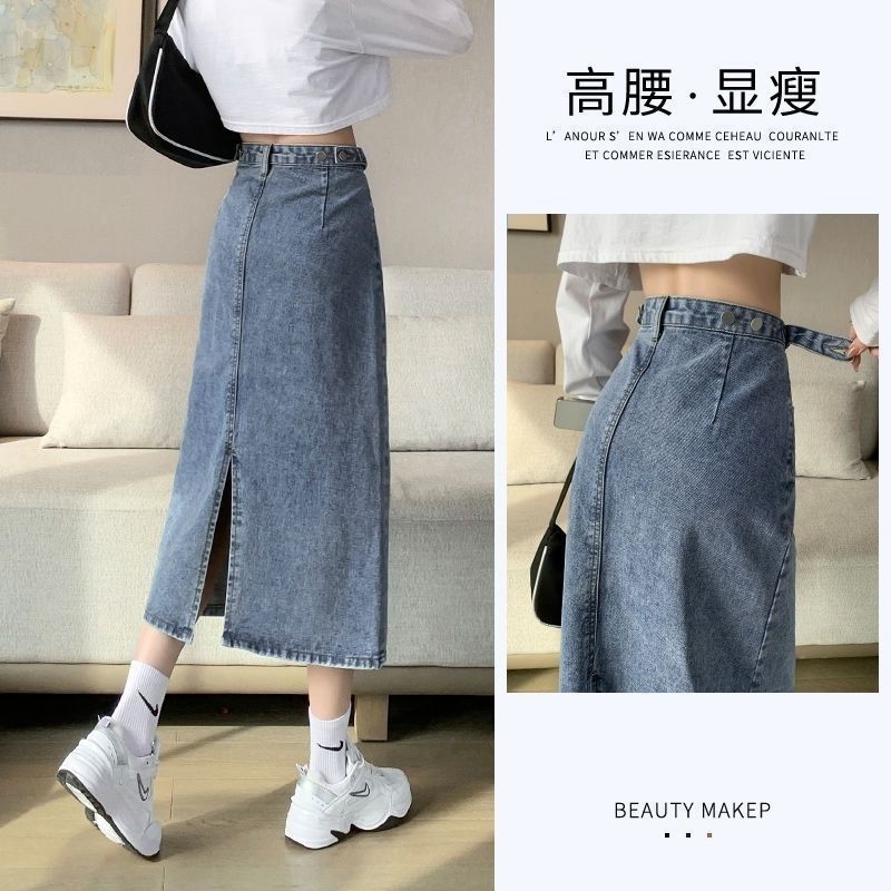 Hong Kong-style Split Denim Skirt Women’s High Waist Slimming Summer 2024 New Loose A- word Mid-length Skirt
