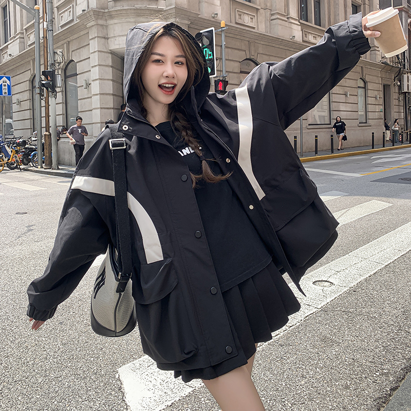 Hong Kong Style Tooling Hooded Windbreaker Women’s 2024 Spring and Autumn New Style Small High-end Sweet Cool Loose Age-reducing Coat