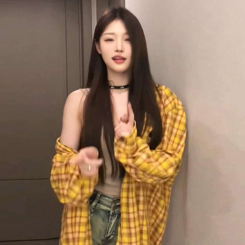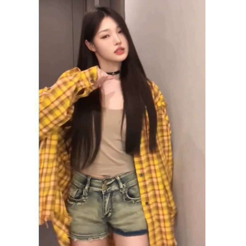 Hong Kong Style Vintage Chic Yellow Plaid Shirt Women’s Inner Stacked Wear Loose Casual All-match Mist-length Shirt for Outer Wear