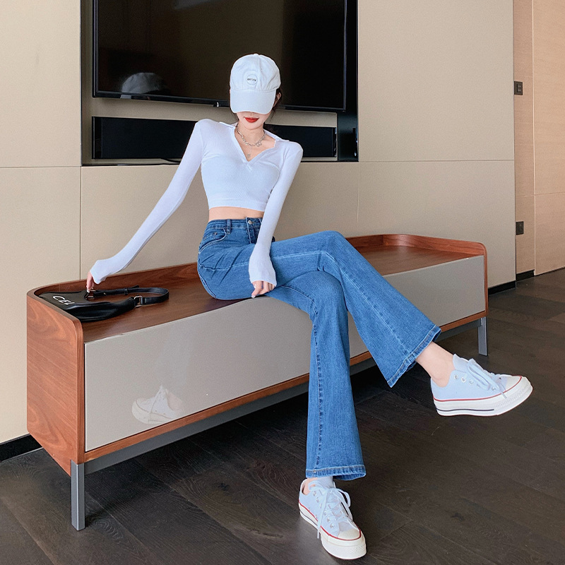 | nameOriginal | Hong Kong Style Vintage Denim Flared Pants Women's 2024 Autumn New Stretch Slim Wide Leg Pants High Waist Micro-pants |