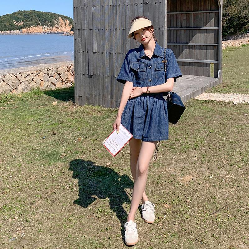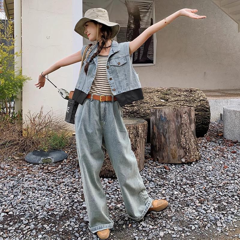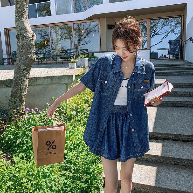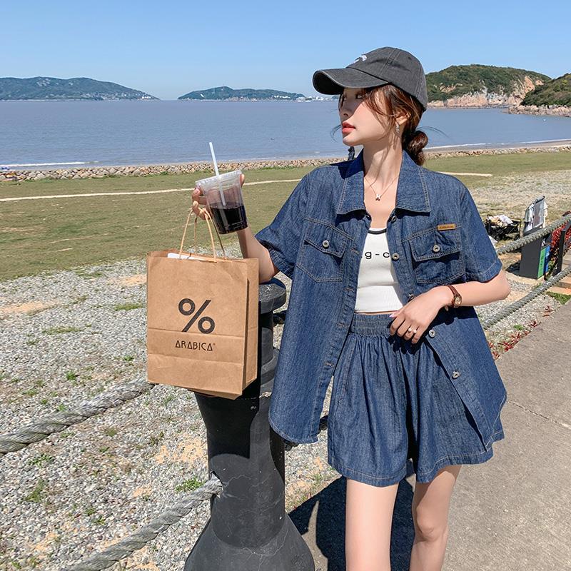 | nameOriginal | Hong Kong Style Vintage Denim Top Set Women's 2024 Summer New Design Sense Western Style Loose Short Pants Two-piece Set |