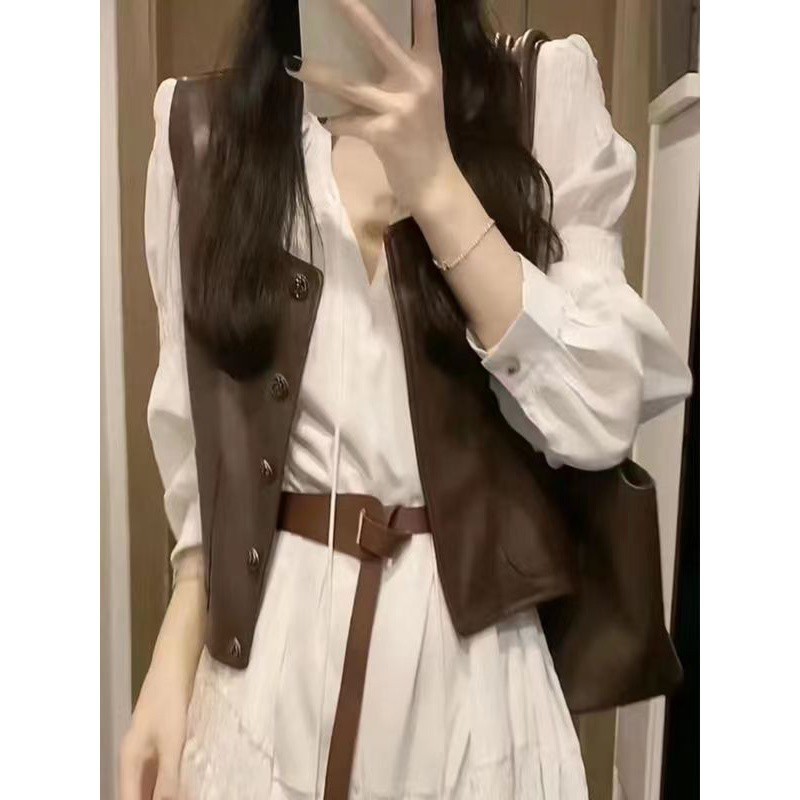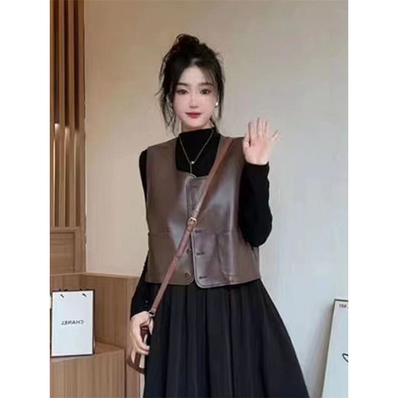| nameOriginal | Hong Kong Style Vintage Leather Vest Women's 2024 New Autumn Design Fashionable Sleeveless Vest Jacket Stacked Top |