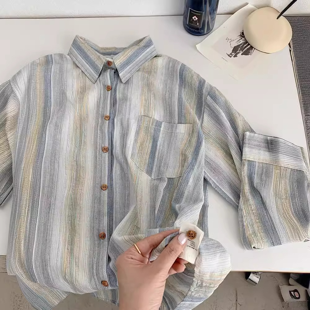 | nameOriginal | Hong Kong Style Vintage Plaid Shirt Women 2024 New Summer Design Sense Niche Chic Top Coat Spring and Autumn |