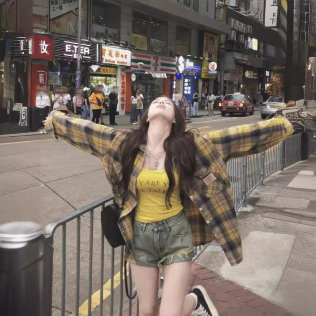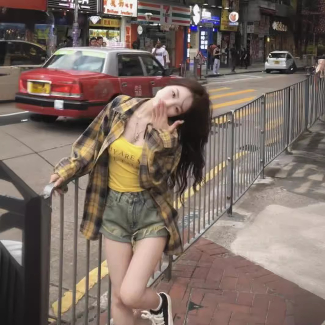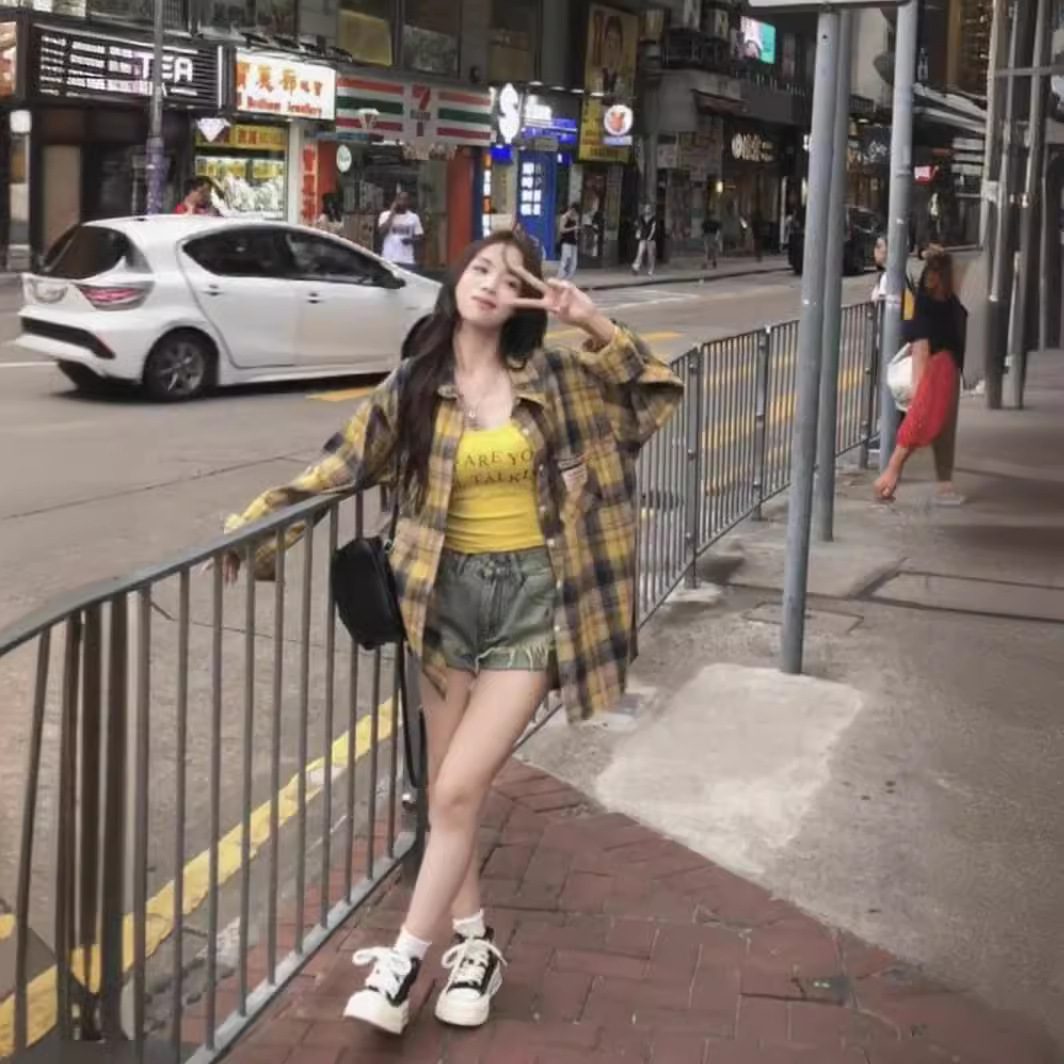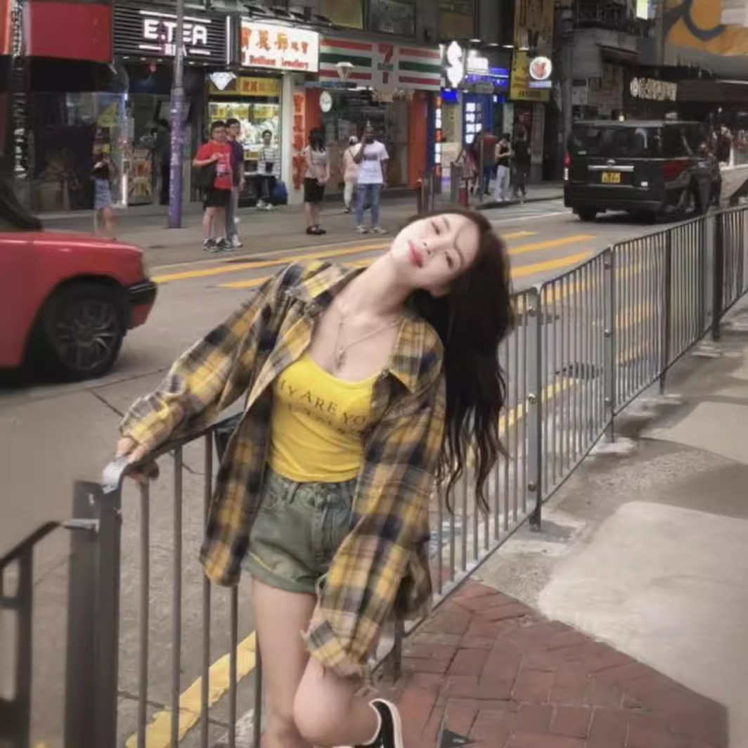 | nameOriginal | Hong Kong Style Vintage vintage Yellow Plaid Shirt Women's Spring and Summer Design Sense Niche Thin Sunscreen Shirt Jacket Trendy |