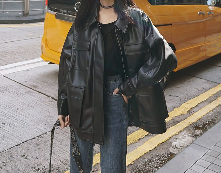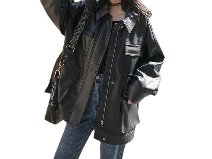| nameOriginal | Hong Kong Style Western Style Leather Women's Middle Long New Spring Autumn Winter fleece-lined Thick Coat Trendy plus size Student Motorcycle Jacket |