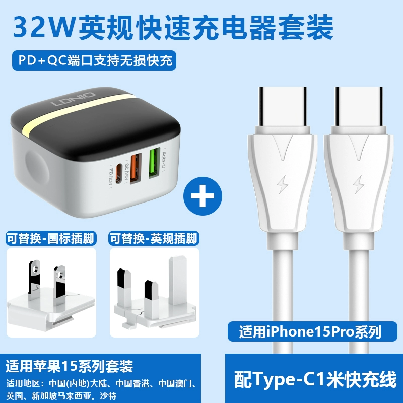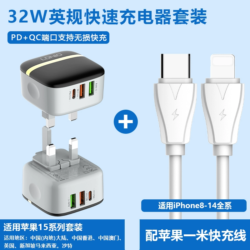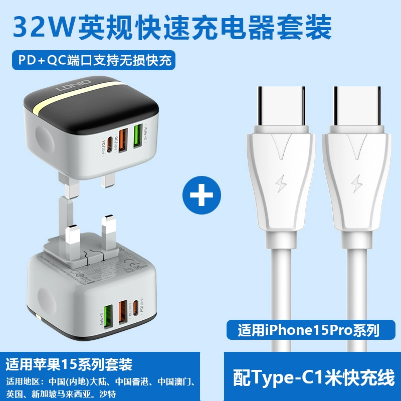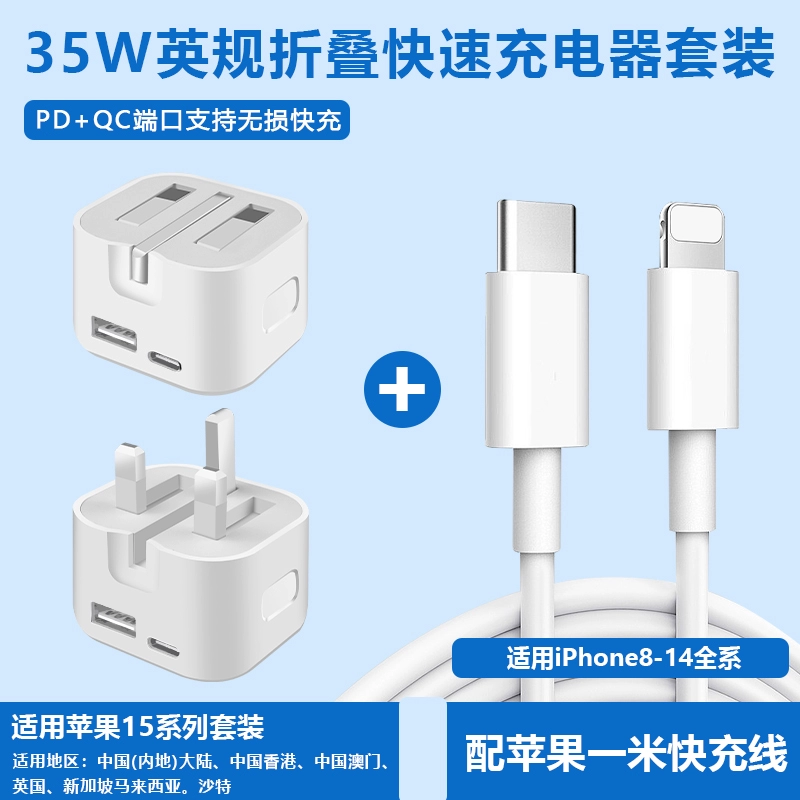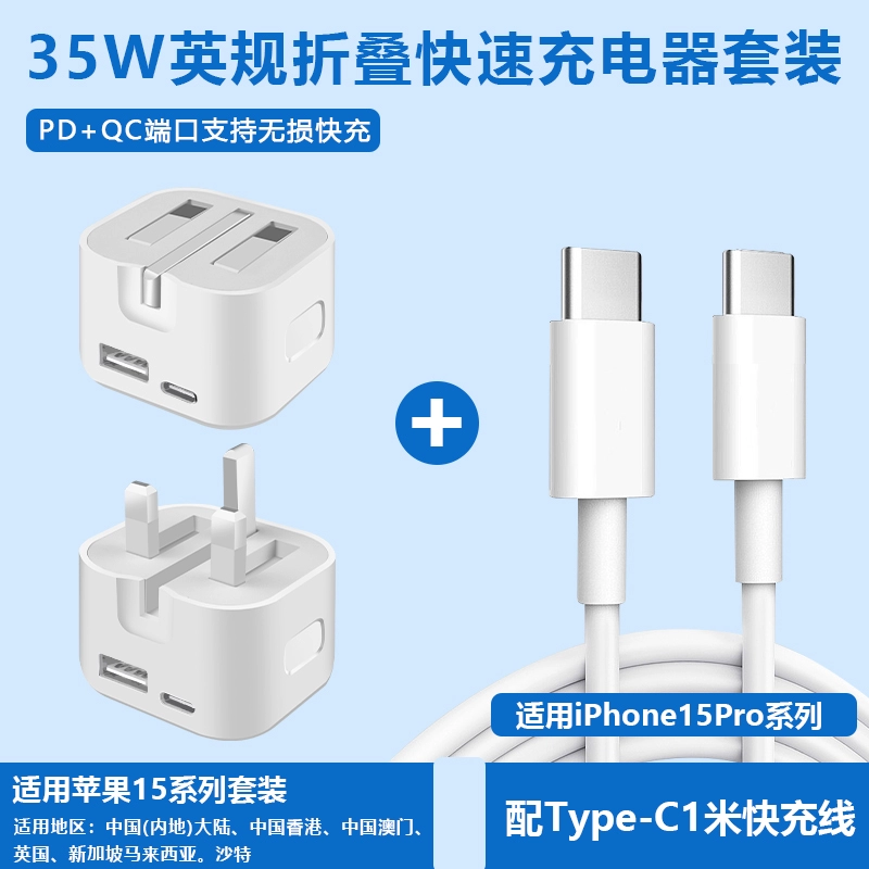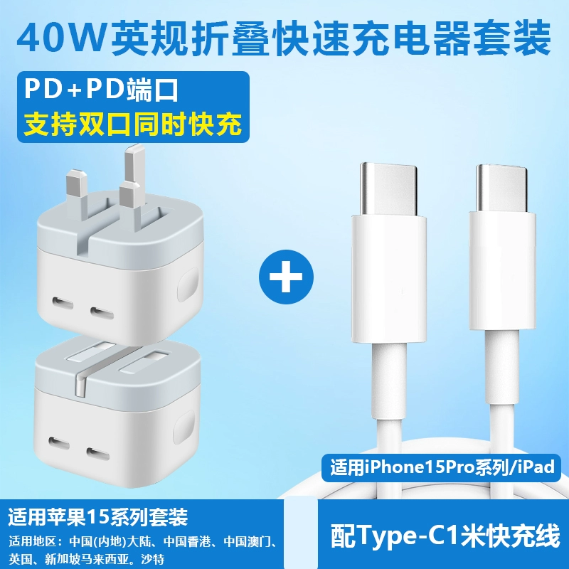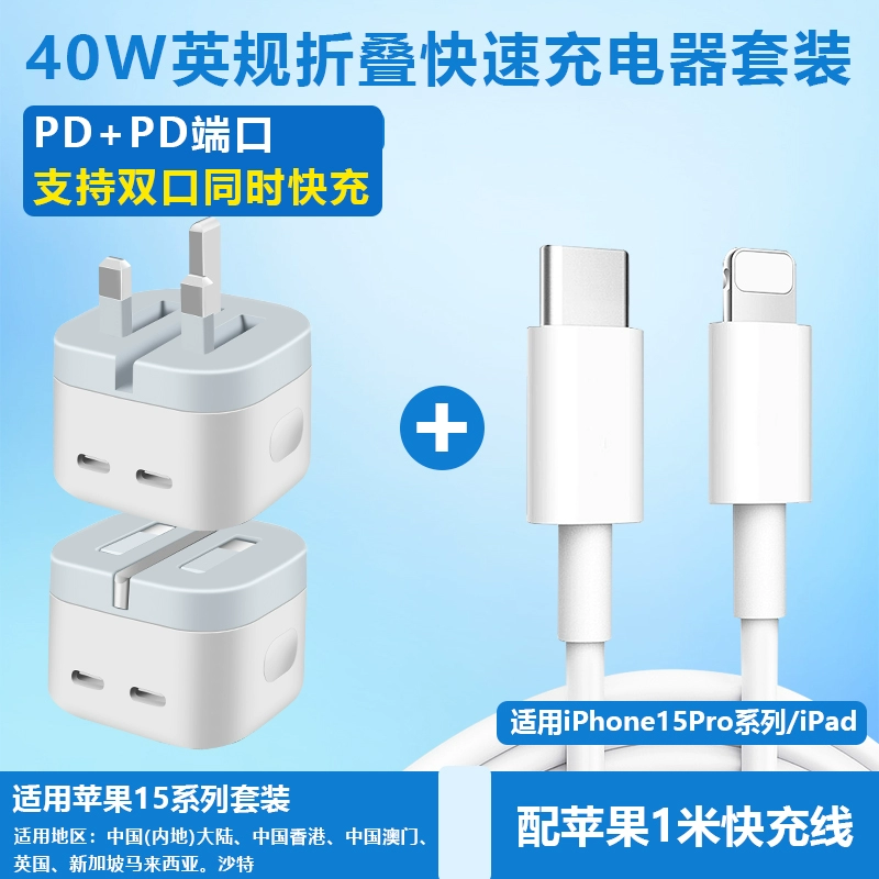 Hong Kong version charger 40W folding fast charging head suitable for Apple iphone15 charging head Hong Kong charger fast charging head Typec socket dual PD20W fast charging cable British standard charger