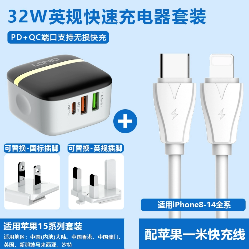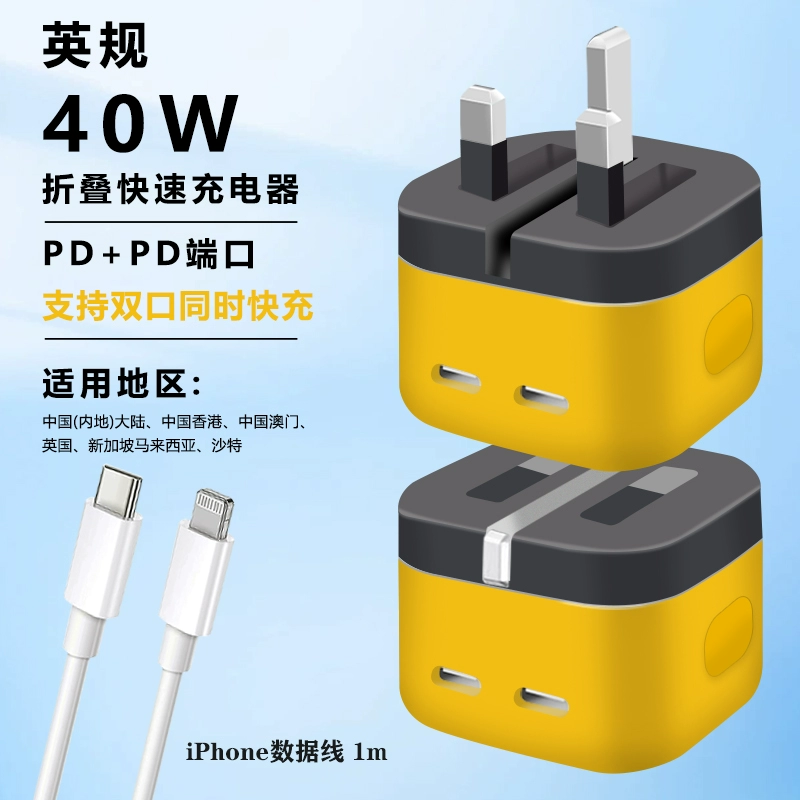 Hong Kong version charger 40W folding fast charging head is suitable for Apple iPhone15 charging head Hong Kong charger fast charging Typec socket dual PD20W fast charging line British charger