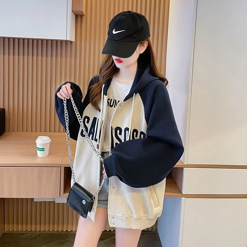 Hooded Cardigan Sweater Women’s Autumn and Winter Velvet Thickened Mid-length Loose bf Lazy Style Sports Jacket oversize