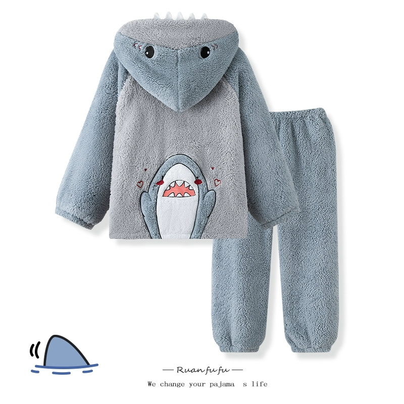 | nameOriginal | Hooded coral velvet thickened winter shark couple pajamas |