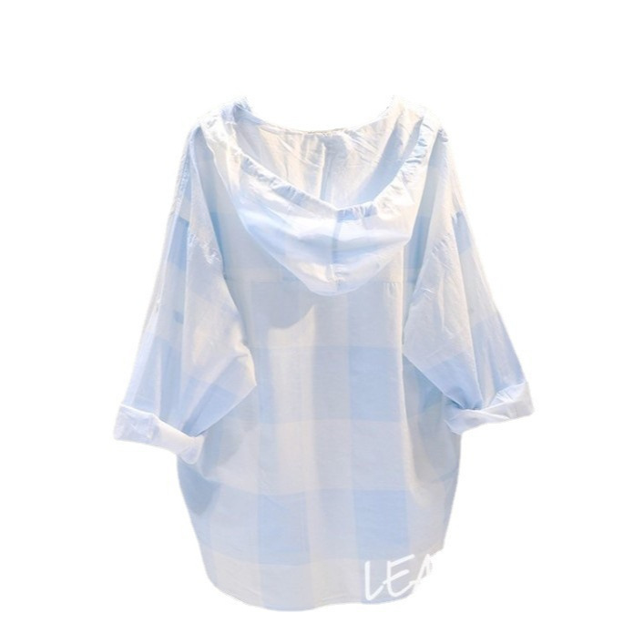 | nameOriginal | Hooded drawstring plaid cotton and linen sun protection clothing shirt for women 2024 spring and summer Korean style loose casual thin cardigan shirt |