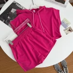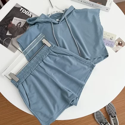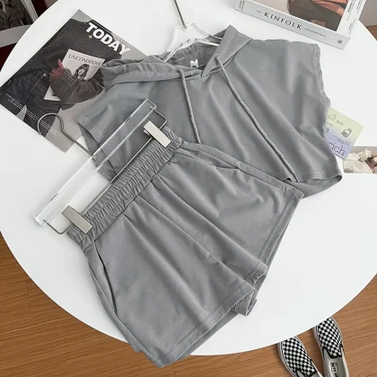 Hooded drawstring sleeveless short sweatshirt + elastic waist wide leg pants casual pants sports two-piece set women’s summer new style