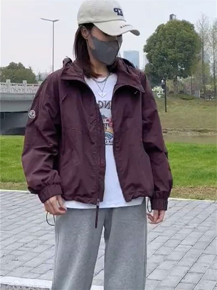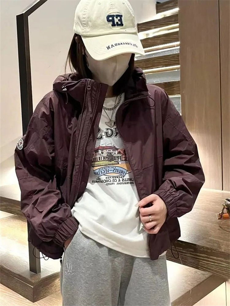 Hooded jacket for women 2024 spring new thin loose casual outdoor sports short jacket windbreaker