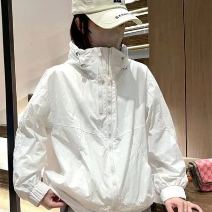 Hooded jacket for women 2024 spring new thin loose casual outdoor sports short jacket windbreaker