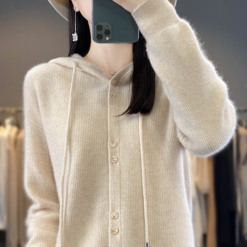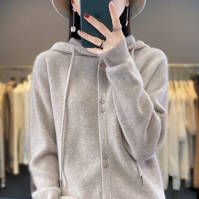 | nameOriginal | Hooded knitted cardigan women's slim-fit long-sleeved sweater autumn and winter chic button hooded sweater coat slimming top |