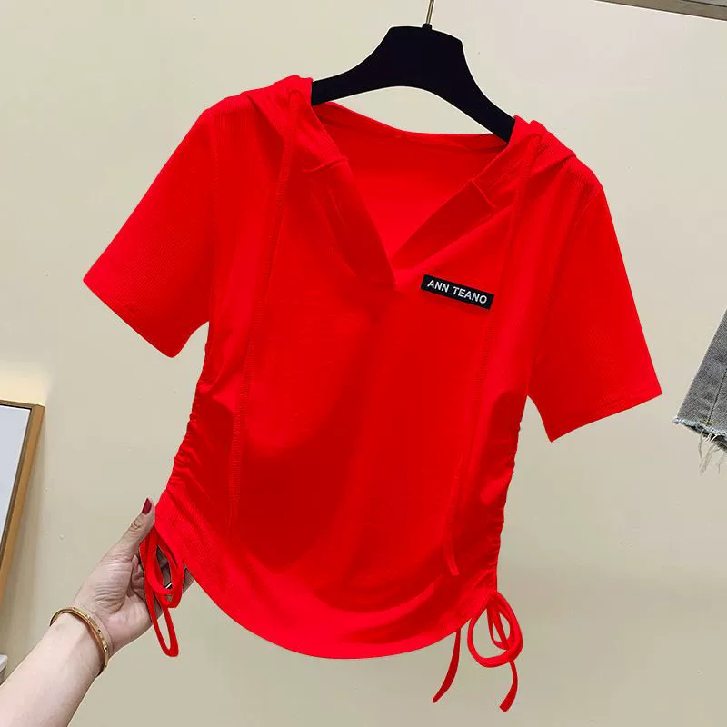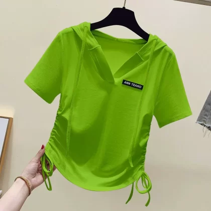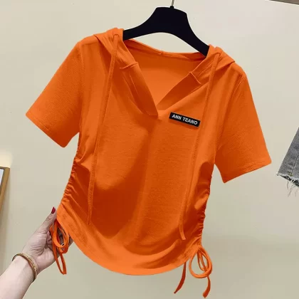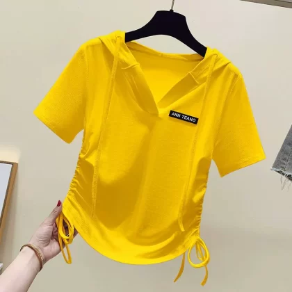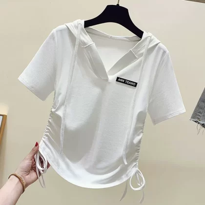 | nameOriginal | Hooded Korean style fashionable irregular drawstring short-sleeved T-shirt |