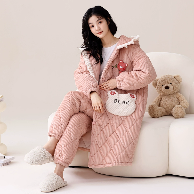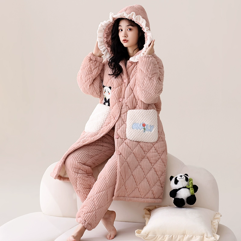 | nameOriginal | Hooded nightgown winter 2023 new three-layer quilted plus velvet thickened coral velvet pajamas women's home wear set |