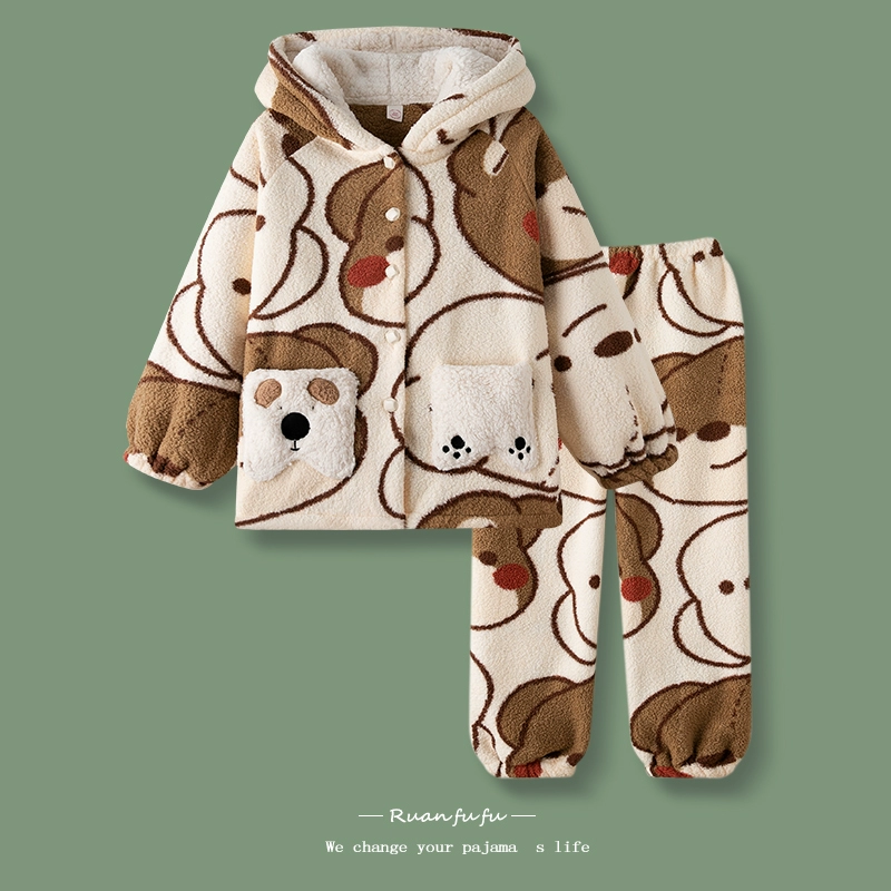 | nameOriginal | Hooded pajamas for women winter coral velvet 2024 new thickened plus velvet warm and cute winter home wear set |