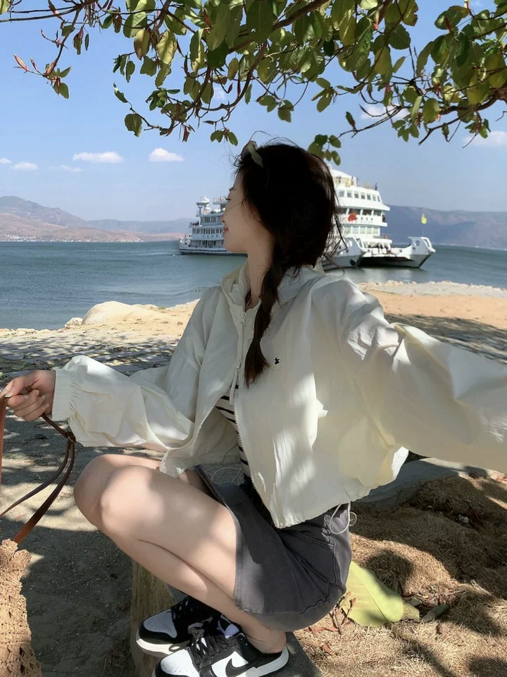 Hooded Spring Drawstring Casual Loose Short Sun Protection Clothing