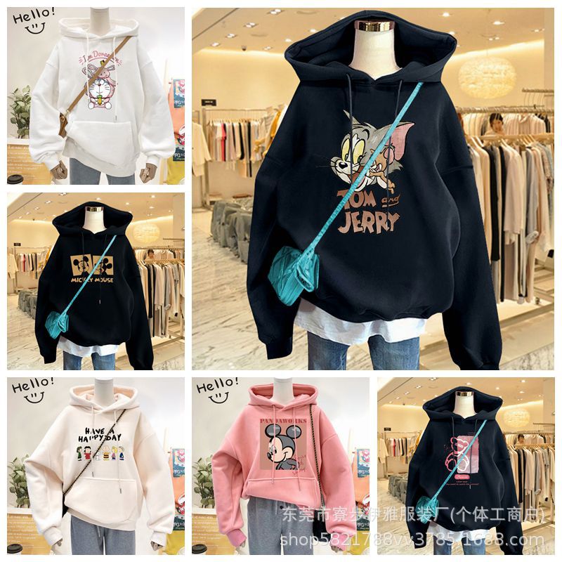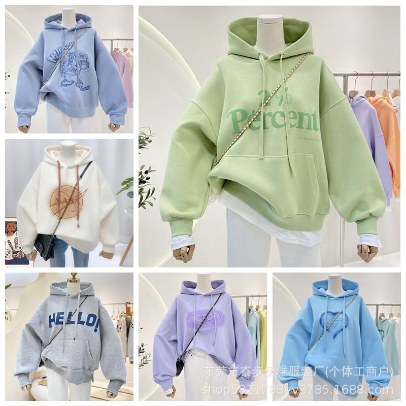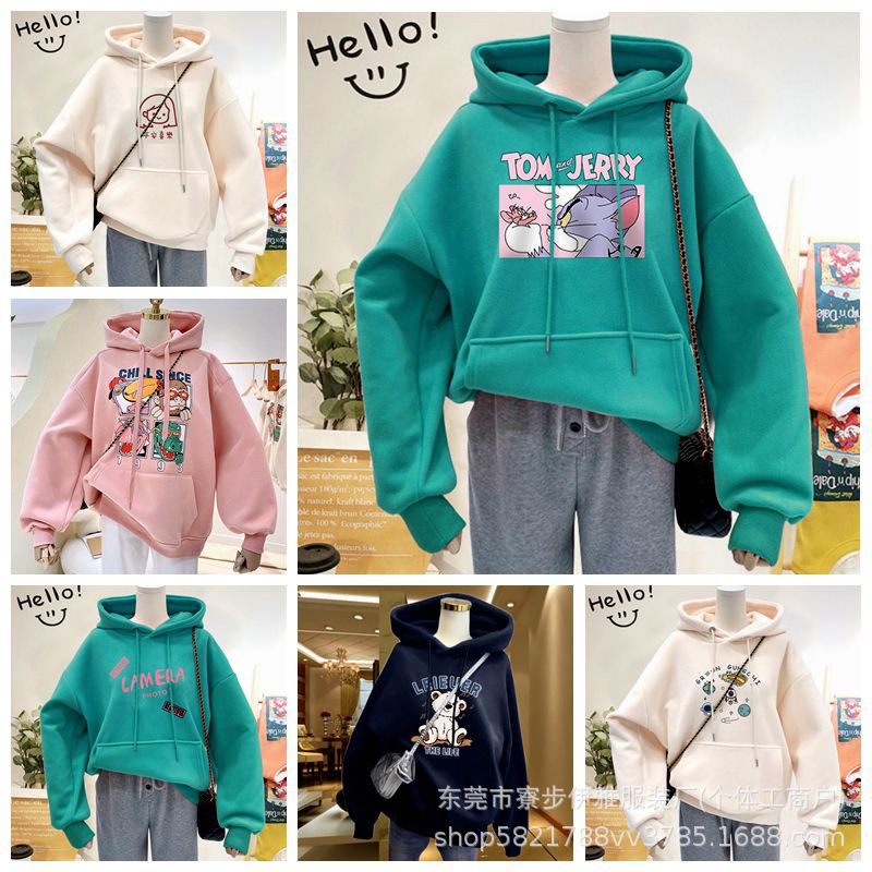 | nameOriginal | Hooded sweater women 2024 autumn and winter new loose version fleece-lined thick Korean printed women's sweater coat wholesale |