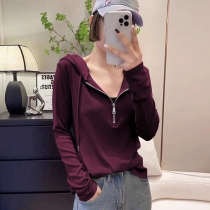 | nameOriginal | Hooded Sweater Women's Long-sleeved 24 Spring New Korean Style plus size All-match Age-reducing Stylistic Top Slim Base Shirt |