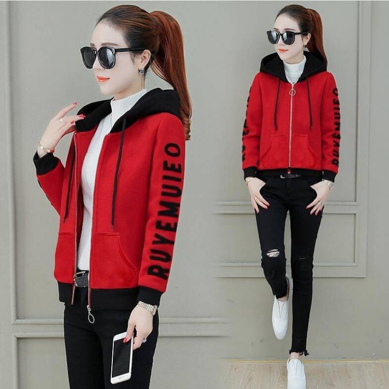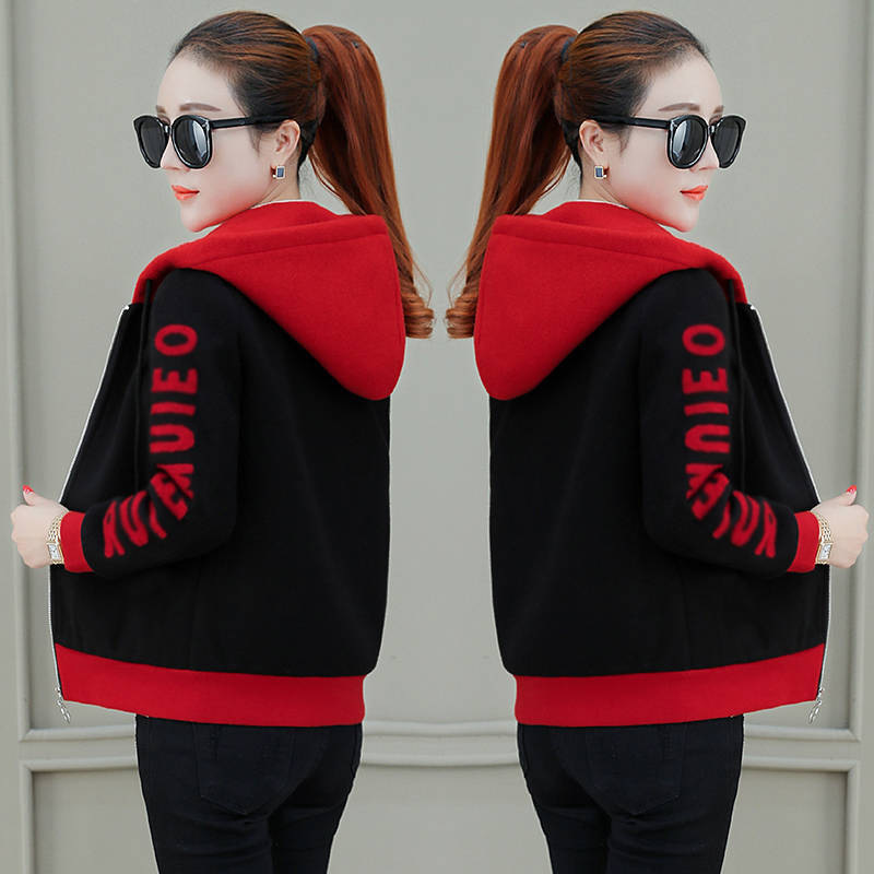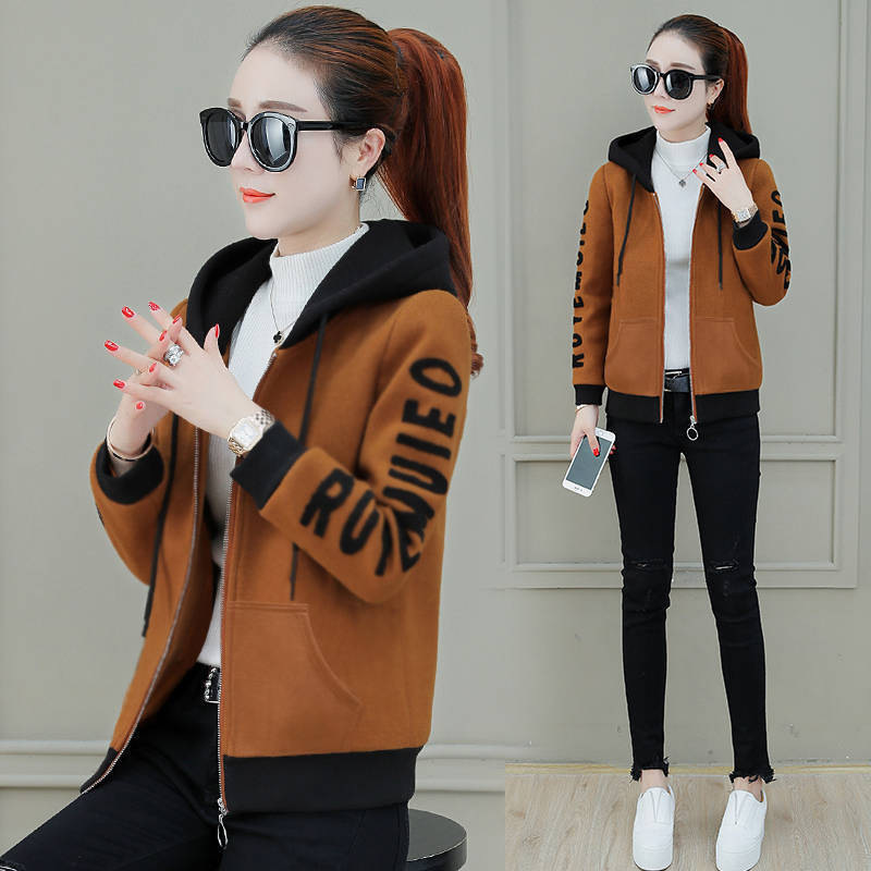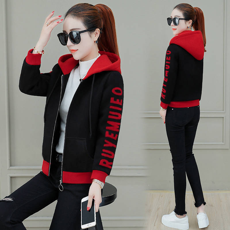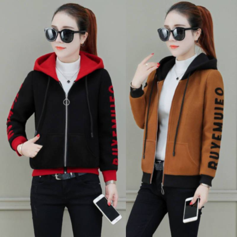 Hooded Sweatshirt Female Student Autumn and Winter Coat 2023 New Korean Loose Slim fleece-lined Top Thick Coat Women